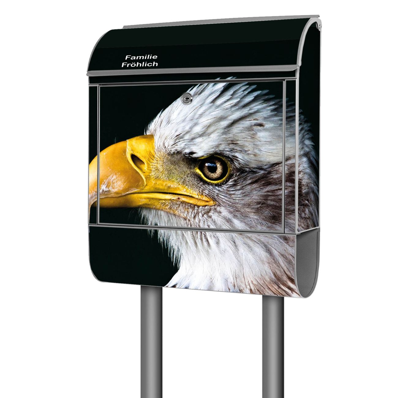 Der banjado Standbriefkasten mit Motiv Motiv Weißkopfseeadler kombiniert großzügigen Stauraum mit modernem Design. Durch das geräumige Fach finden auch große A4-Sendungen problemlos Platz. Die integrierte Zeitungsrolle sorgt dafür, dass Tageszeitungen und Magazine separat und griffbereit untergebracht sind. Der pulverbeschichtete Standfuß ist farblich passend zum Briefkasten gestaltet und sorgt für ein stimmiges Gesamtbild. Mit dem individuellen Motiv setzen Sie einen optischen Akzent, der sowohl praktisch als auch dekorativ ist.