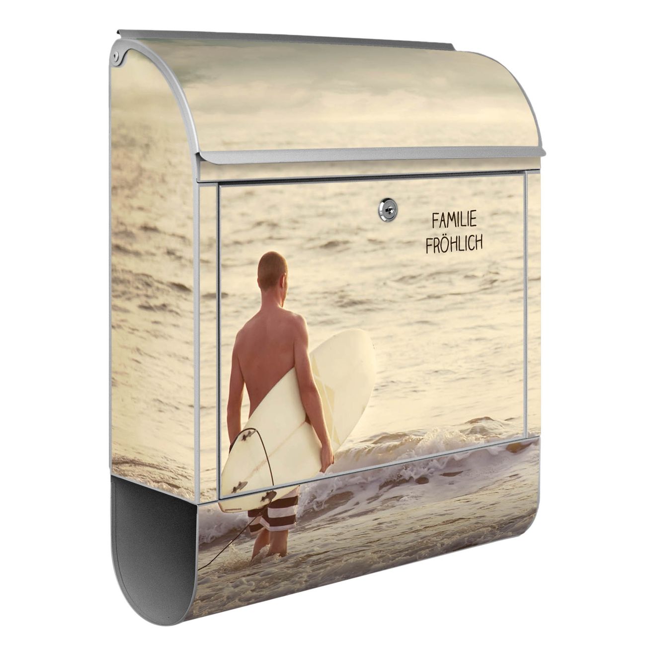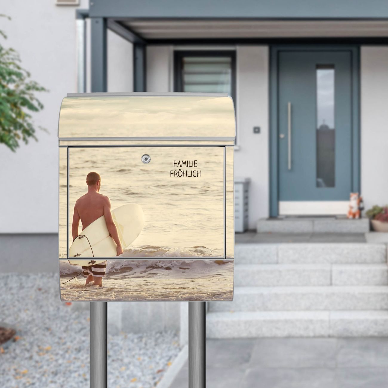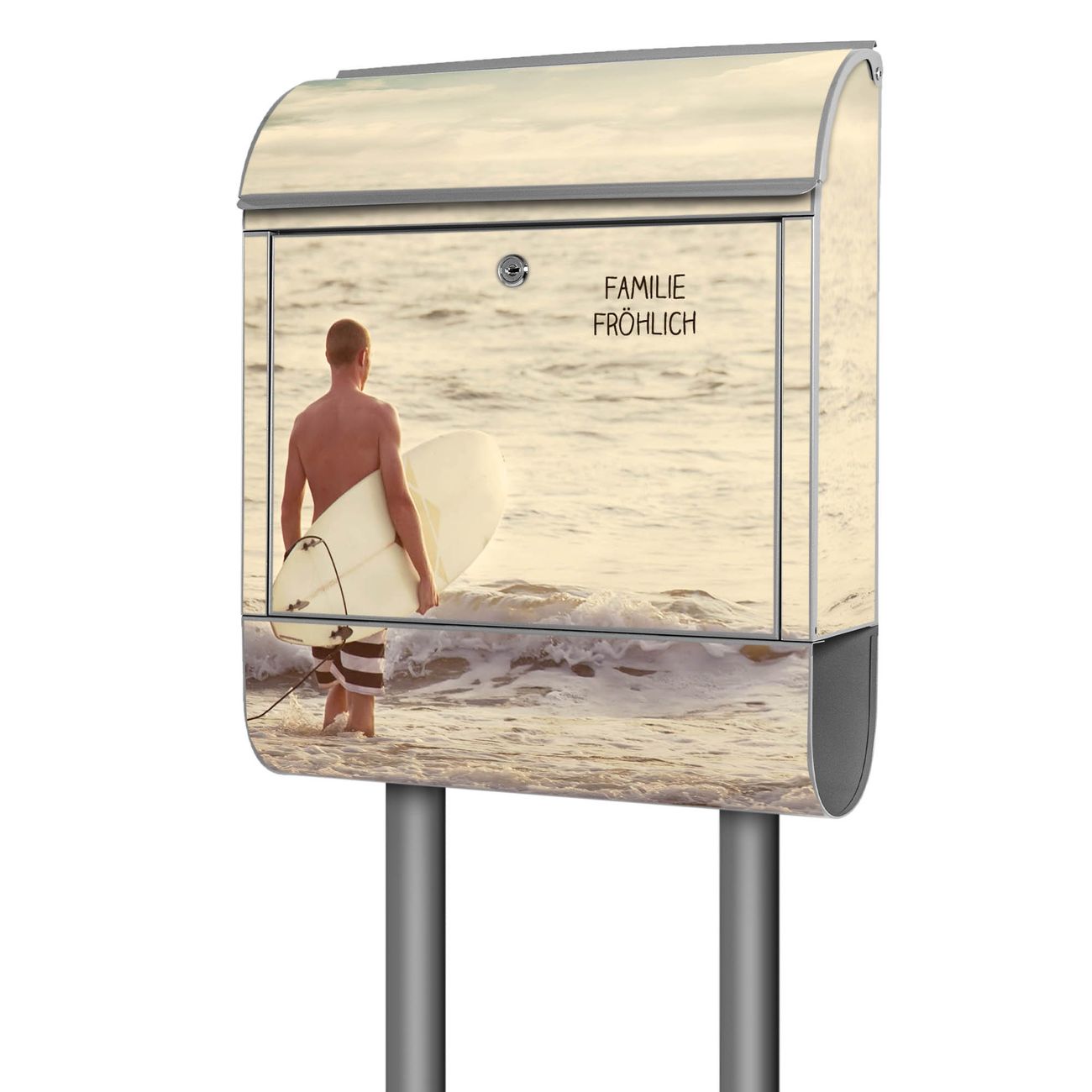 Der banjado Standbriefkasten mit Motiv Motiv Wellenreiten Gehen 2 kombiniert großzügigen Stauraum mit modernem Design. Durch das geräumige Fach finden auch große A4-Sendungen problemlos Platz. Die integrierte Zeitungsrolle sorgt dafür, dass Tageszeitungen und Magazine separat und griffbereit untergebracht sind. Der pulverbeschichtete Standfuß ist farblich passend zum Briefkasten gestaltet und sorgt für ein stimmiges Gesamtbild. Mit dem individuellen Motiv setzen Sie einen optischen Akzent, der sowohl praktisch als auch dekorativ ist.