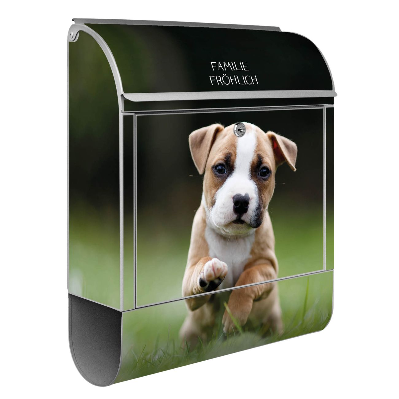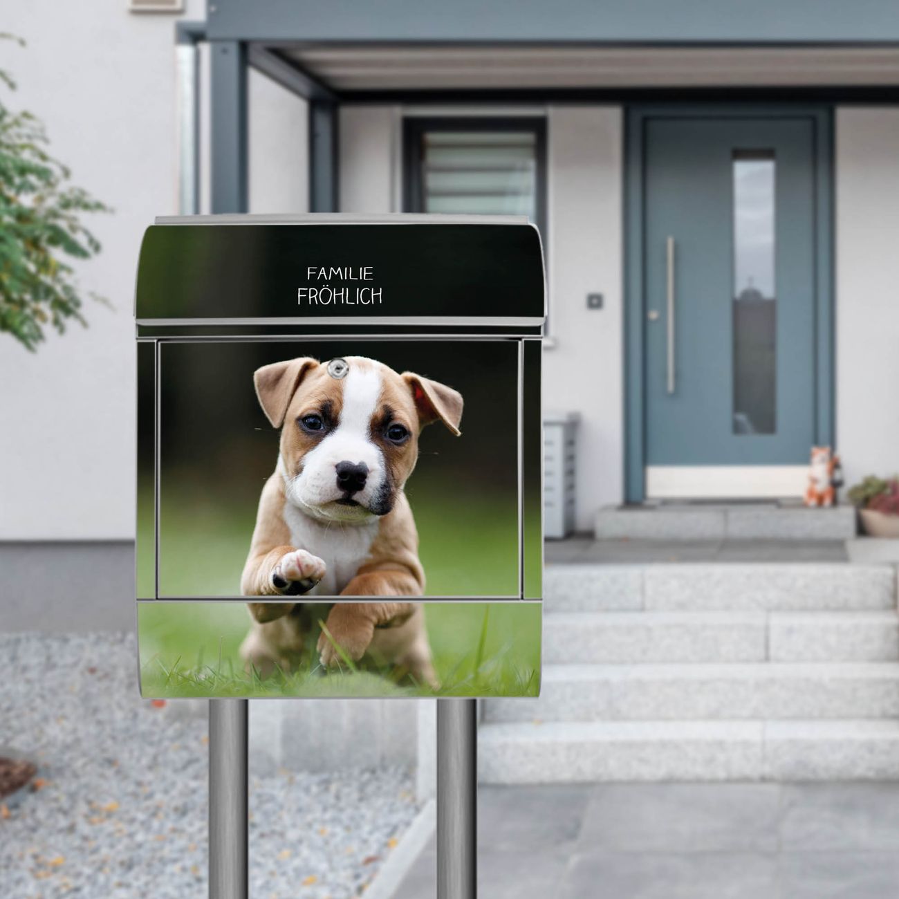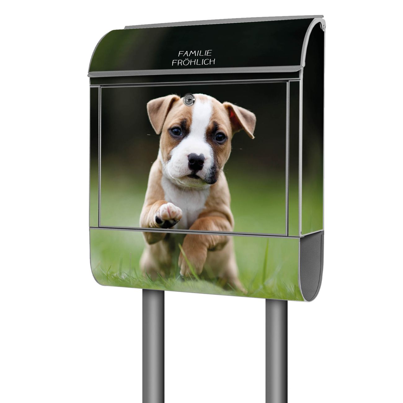 Standbriefkasten Stahl Welpe im Gras