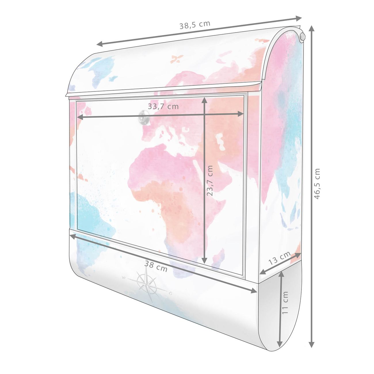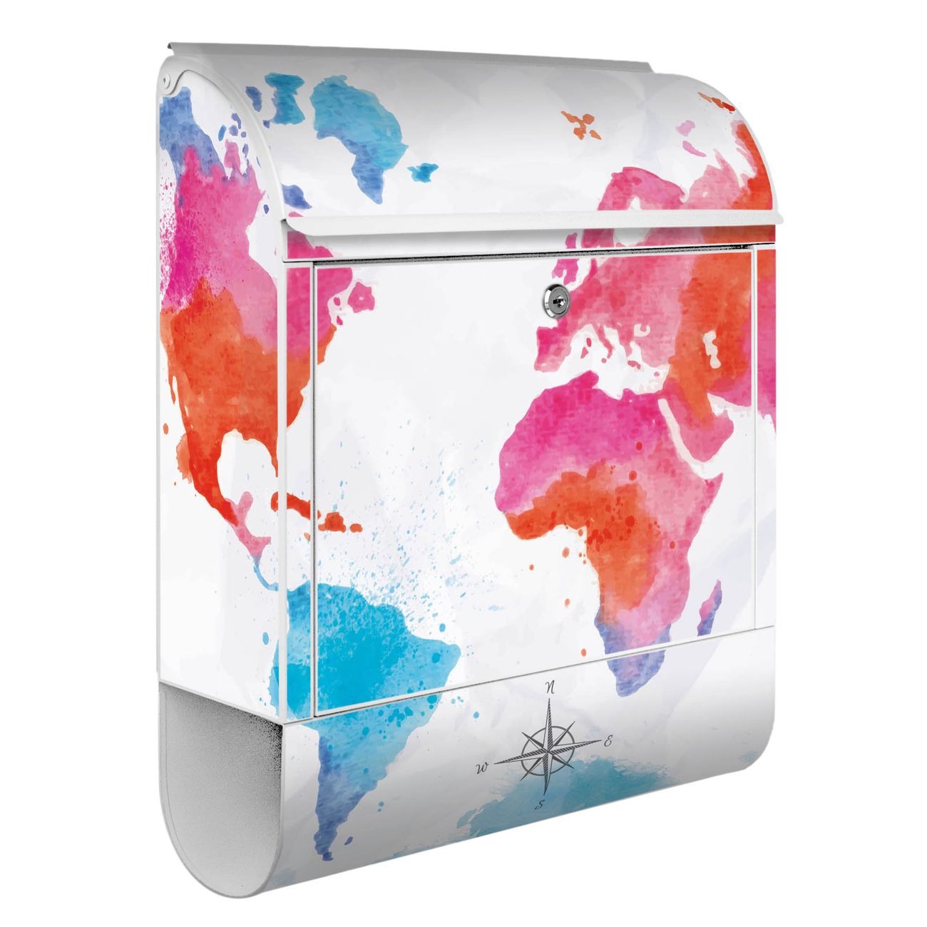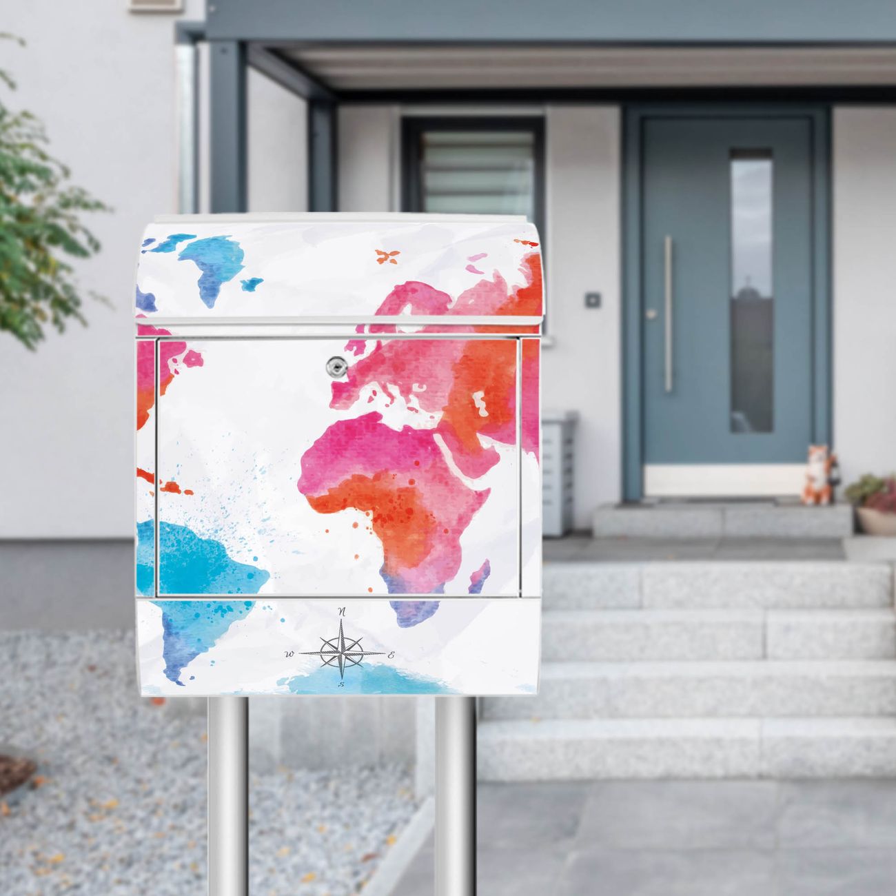 Standbriefkasten Stahl Weltkarte pastell