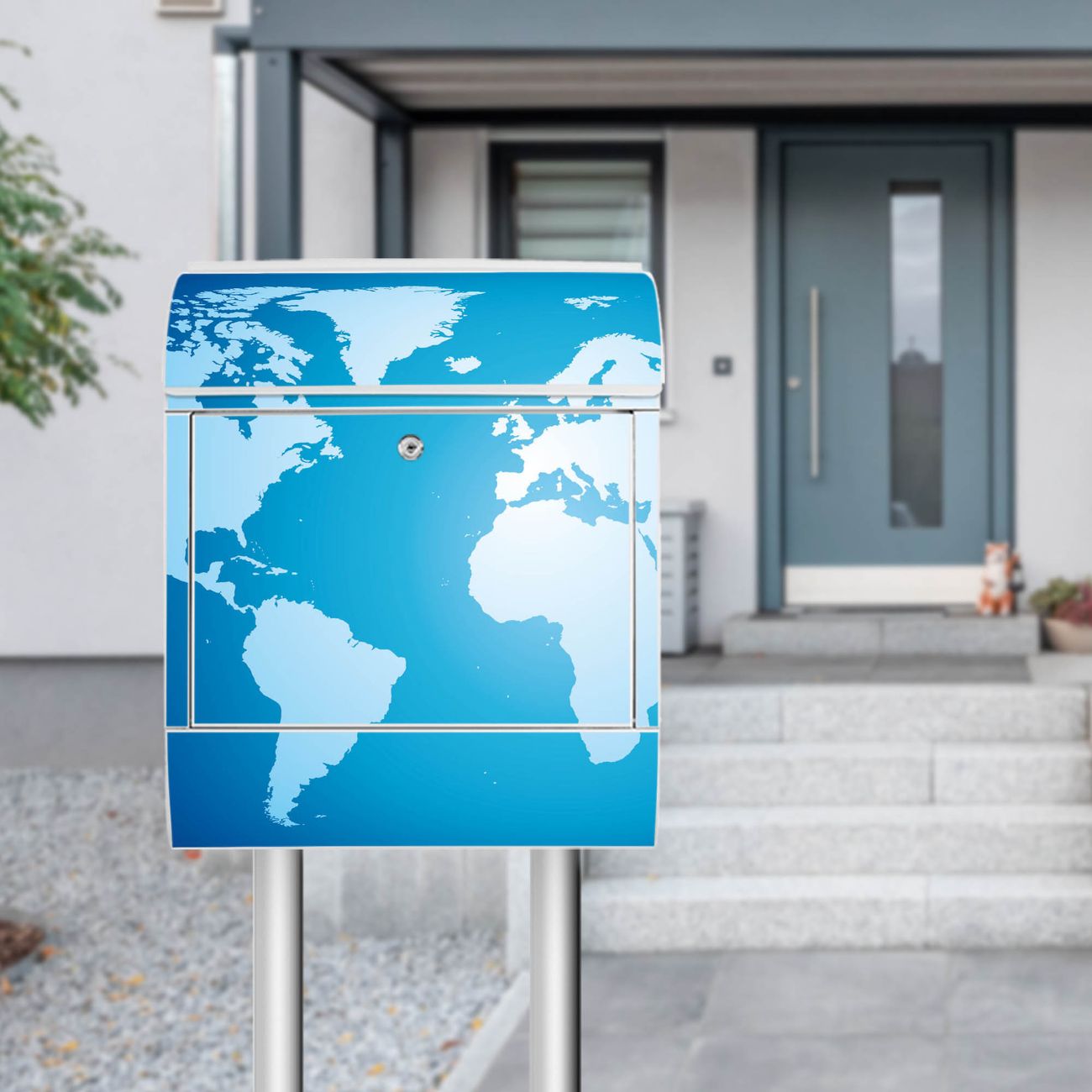Standbriefkasten Stahl Weltkarte