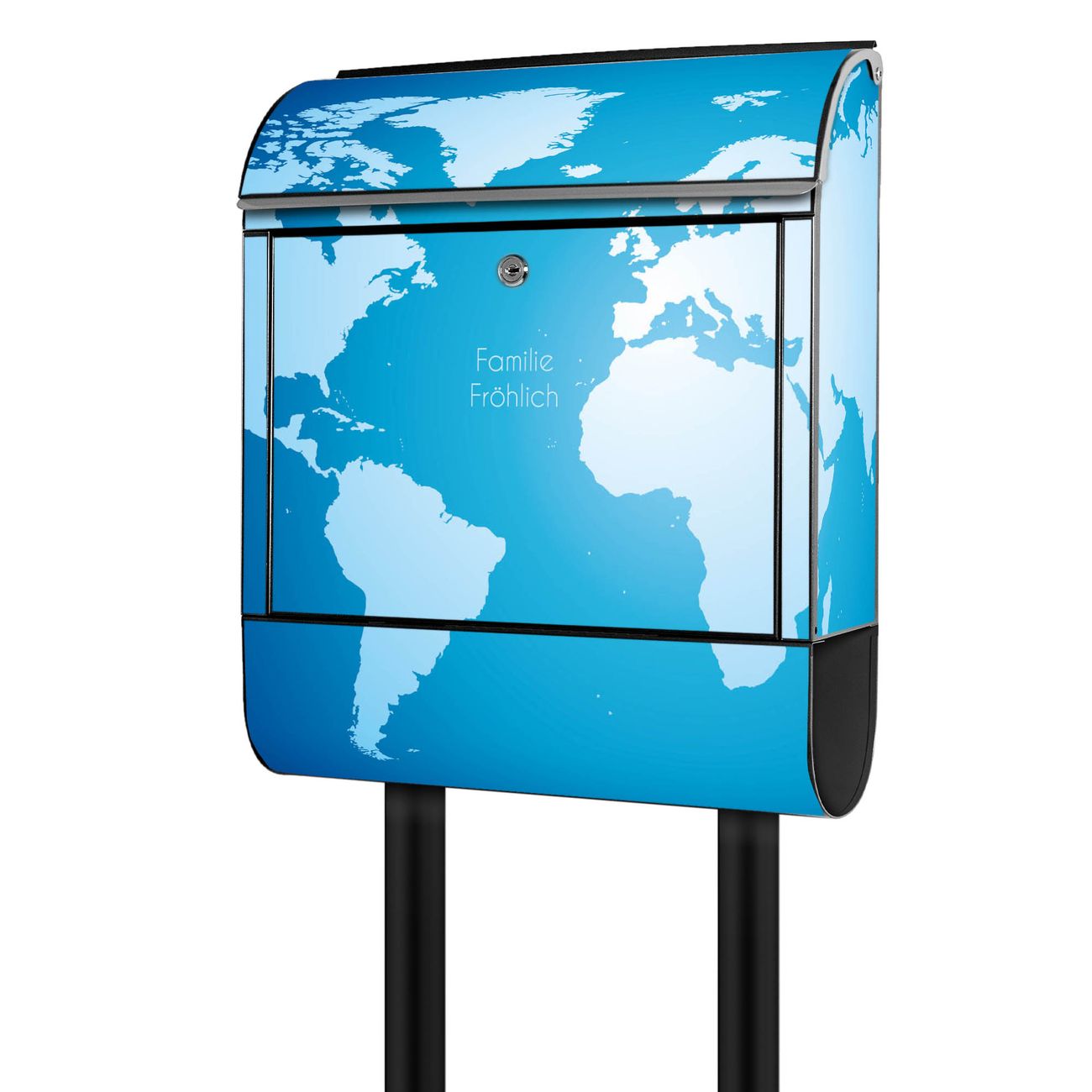 Standbriefkasten Stahl Weltkarte