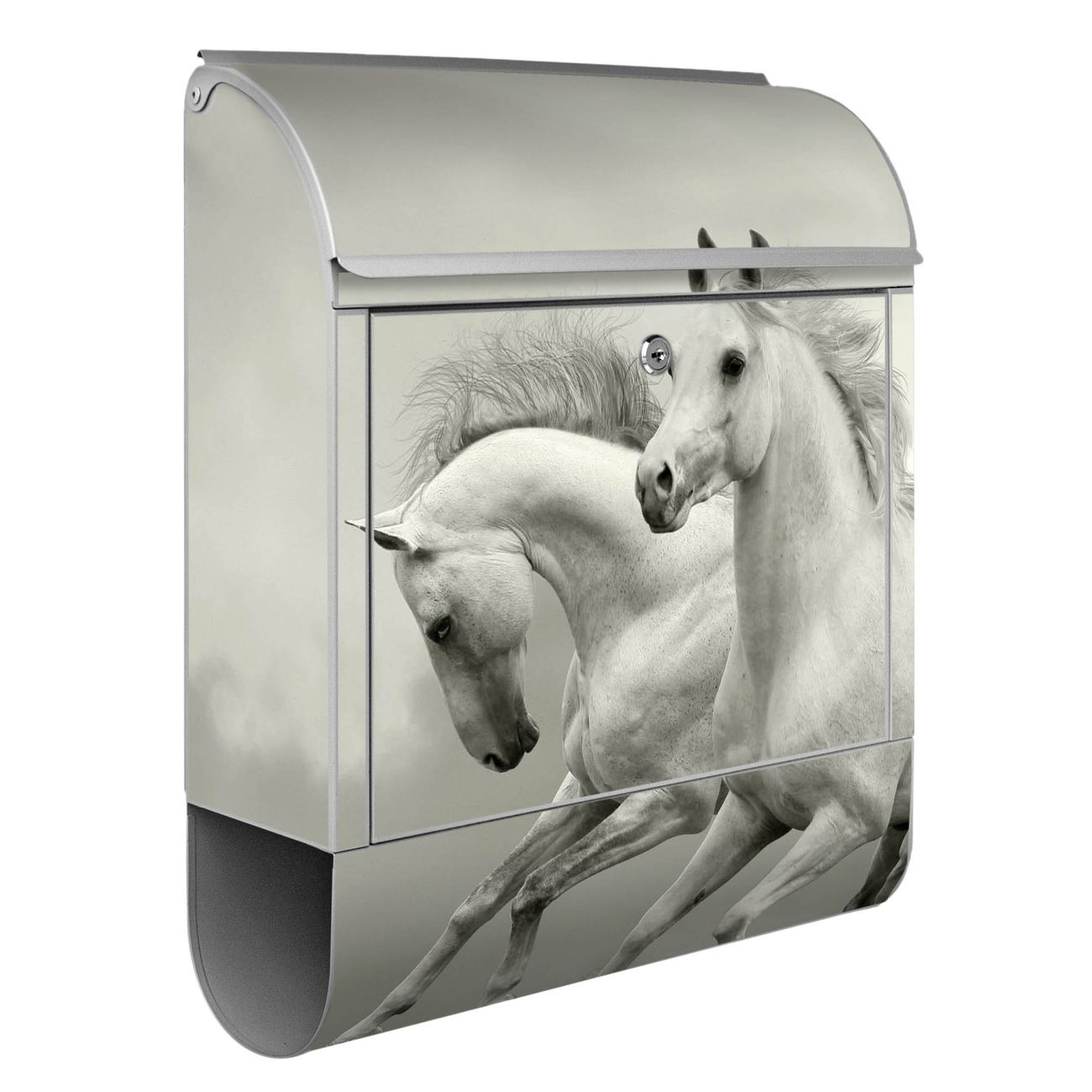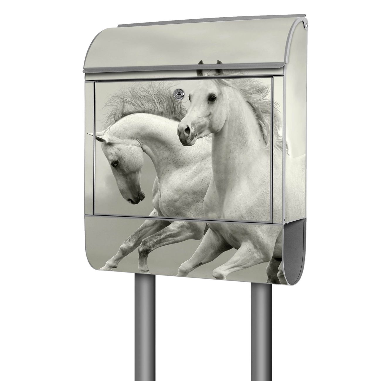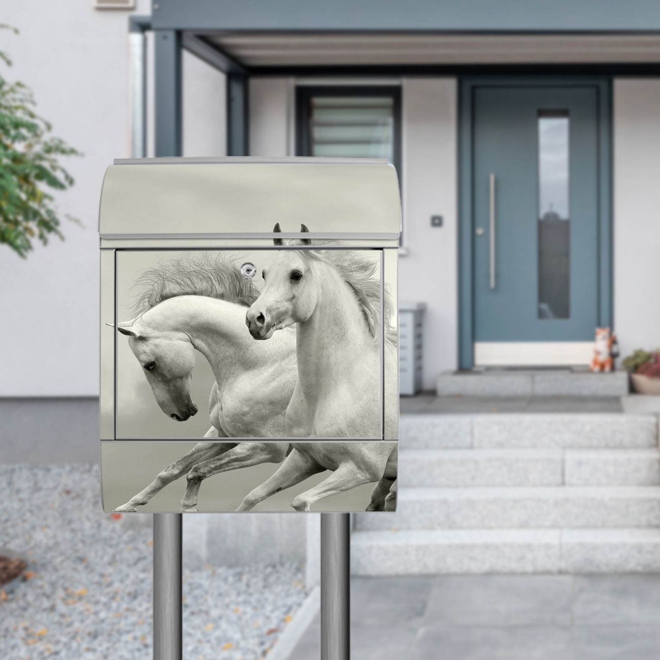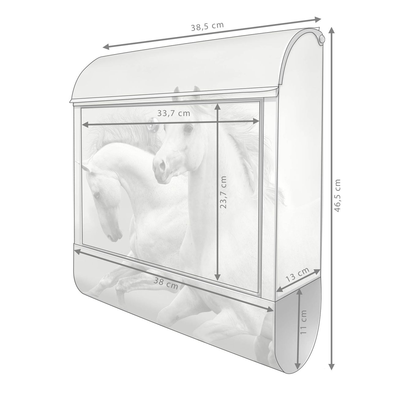 Der banjado Standbriefkasten mit Motiv Motiv Wilde Pferde SW kombiniert großzügigen Stauraum mit modernem Design. Durch das geräumige Fach finden auch große A4-Sendungen problemlos Platz. Die integrierte Zeitungsrolle sorgt dafür, dass Tageszeitungen und Magazine separat und griffbereit untergebracht sind. Der pulverbeschichtete Standfuß ist farblich passend zum Briefkasten gestaltet und sorgt für ein stimmiges Gesamtbild. Mit dem individuellen Motiv setzen Sie einen optischen Akzent, der sowohl praktisch als auch dekorativ ist.