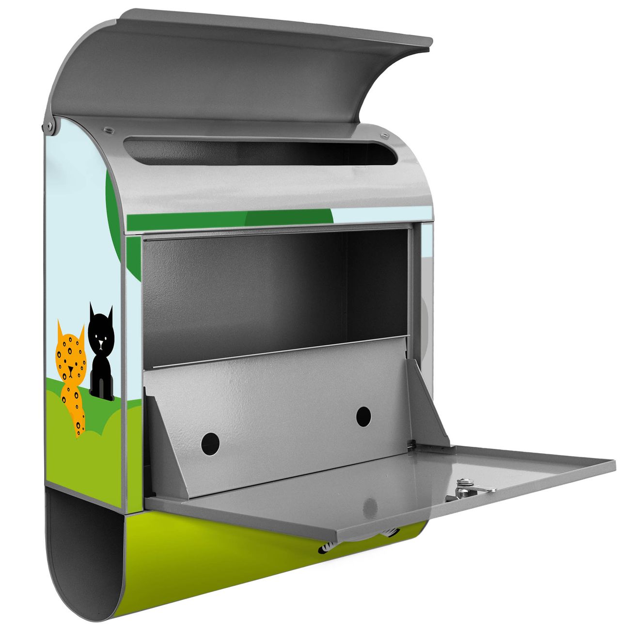 Der banjado Standbriefkasten mit Motiv Motiv Wilde Tiere kombiniert großzügigen Stauraum mit modernem Design. Durch das geräumige Fach finden auch große A4-Sendungen problemlos Platz. Die integrierte Zeitungsrolle sorgt dafür, dass Tageszeitungen und Magazine separat und griffbereit untergebracht sind. Der pulverbeschichtete Standfuß ist farblich passend zum Briefkasten gestaltet und sorgt für ein stimmiges Gesamtbild. Mit dem individuellen Motiv setzen Sie einen optischen Akzent, der sowohl praktisch als auch dekorativ ist.