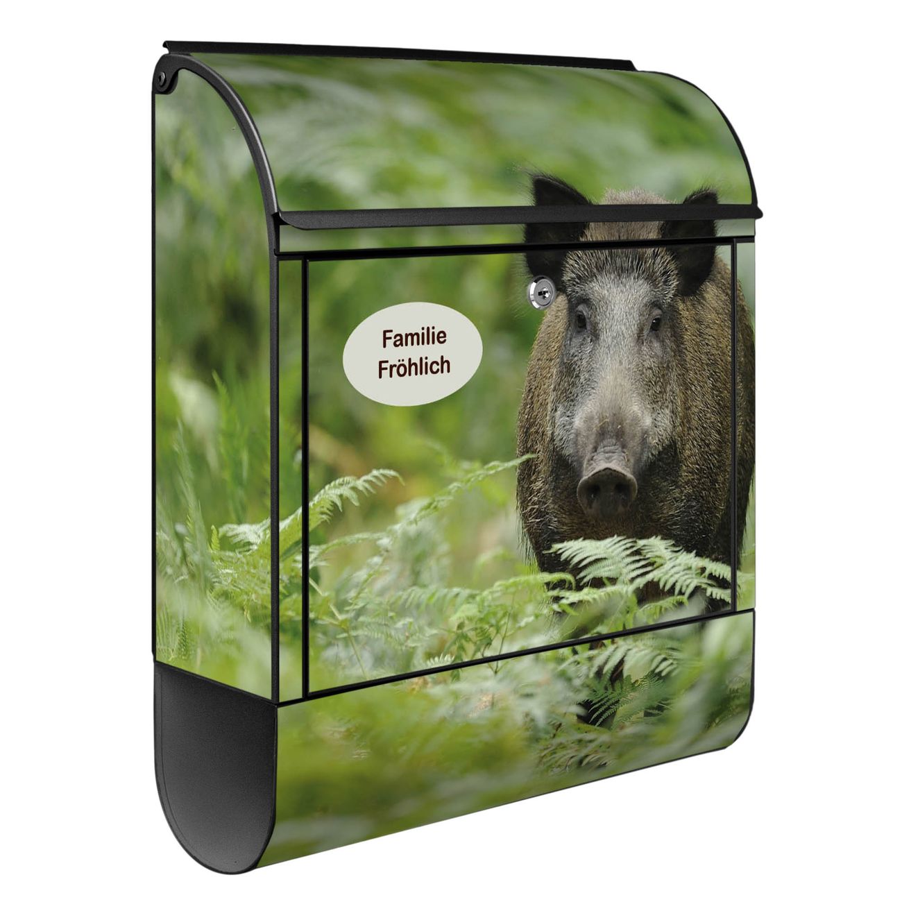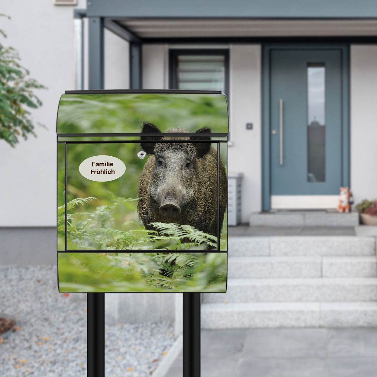 Der banjado Standbriefkasten mit Motiv Motiv Wildschwein kombiniert großzügigen Stauraum mit modernem Design. Durch das geräumige Fach finden auch große A4-Sendungen problemlos Platz. Die integrierte Zeitungsrolle sorgt dafür, dass Tageszeitungen und Magazine separat und griffbereit untergebracht sind. Der pulverbeschichtete Standfuß ist farblich passend zum Briefkasten gestaltet und sorgt für ein stimmiges Gesamtbild. Mit dem individuellen Motiv setzen Sie einen optischen Akzent, der sowohl praktisch als auch dekorativ ist.