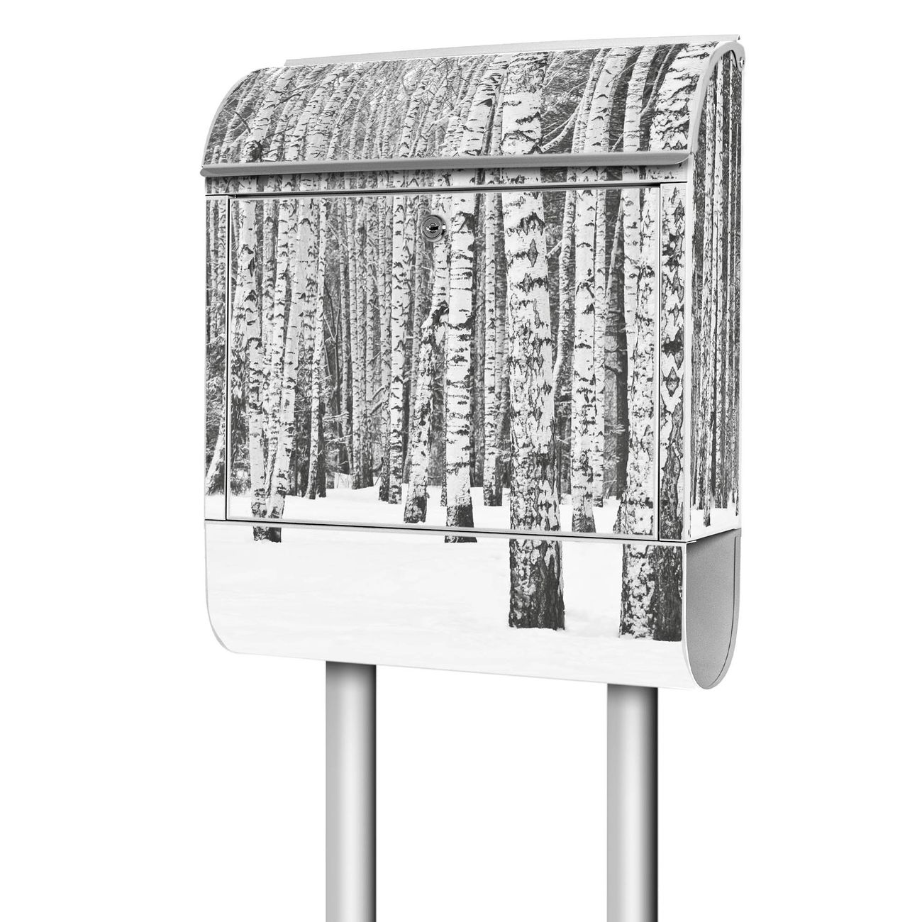 Standbriefkasten Stahl Winterlicher Birkenwald
