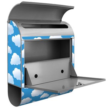 Der banjado Standbriefkasten mit Motiv Motiv Wölkchen kombiniert großzügigen Stauraum mit modernem Design. Durch das geräumige Fach finden auch große A4-Sendungen problemlos Platz. Die integrierte Zeitungsrolle sorgt dafür, dass Tageszeitungen und Magazine separat und griffbereit untergebracht sind. Der pulverbeschichtete Standfuß ist farblich passend zum Briefkasten gestaltet und sorgt für ein stimmiges Gesamtbild. Mit dem individuellen Motiv setzen Sie einen optischen Akzent, der sowohl praktisch als auch dekorativ ist.