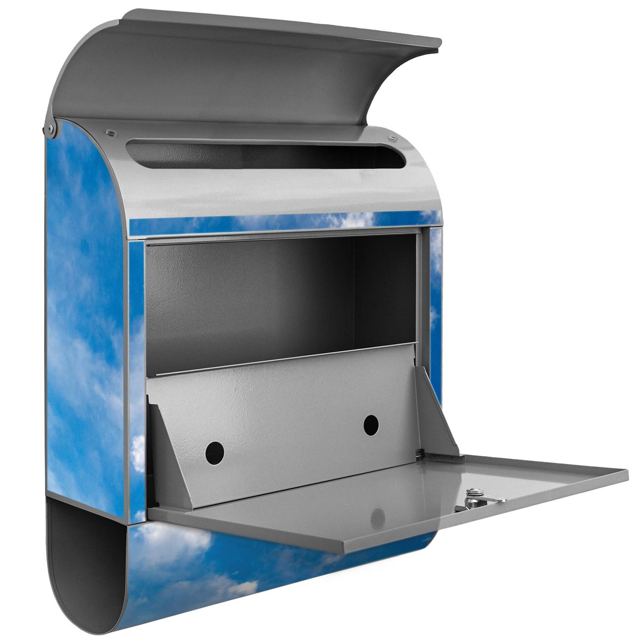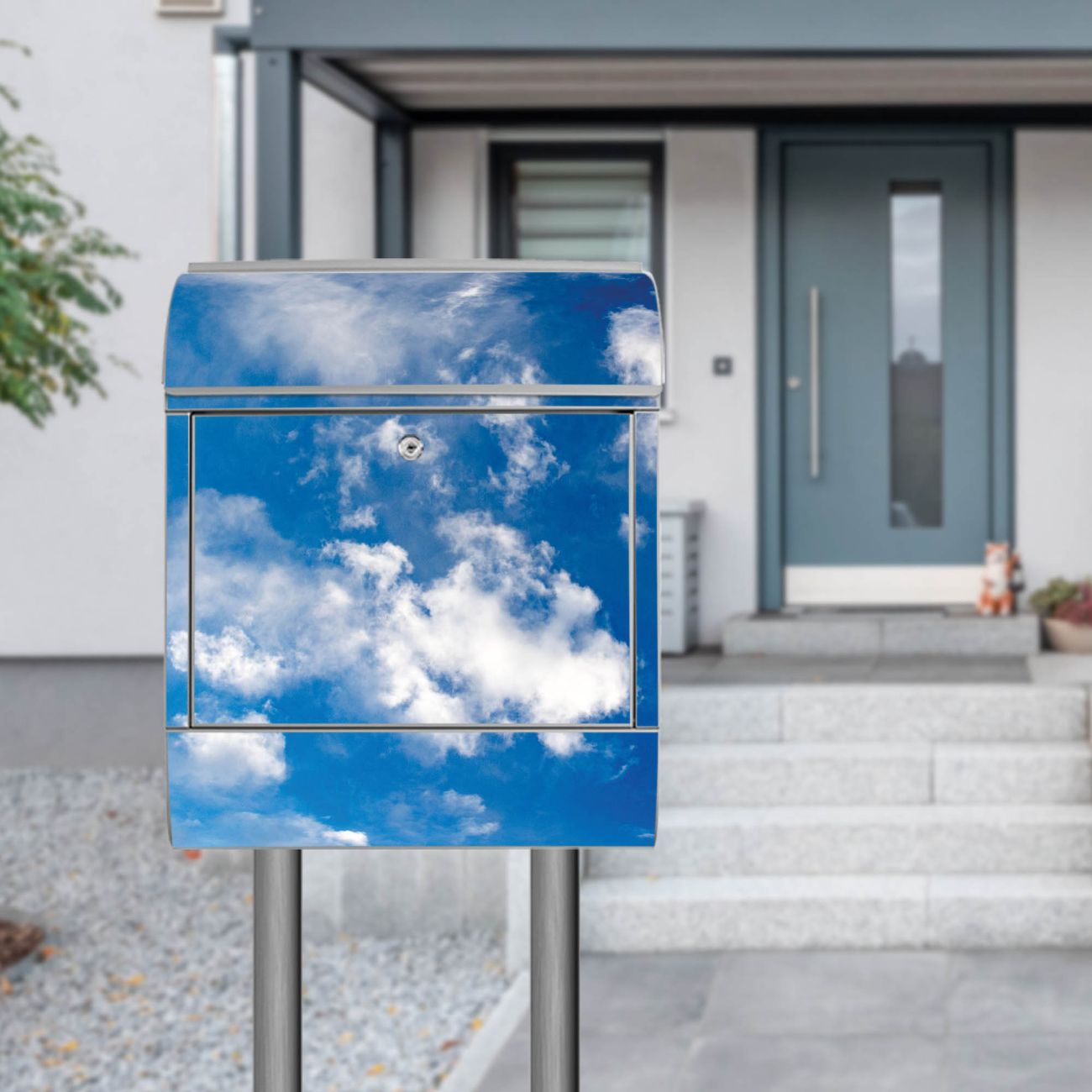 Der banjado Standbriefkasten mit Motiv Motiv Wolken 2 kombiniert großzügigen Stauraum mit modernem Design. Durch das geräumige Fach finden auch große A4-Sendungen problemlos Platz. Die integrierte Zeitungsrolle sorgt dafür, dass Tageszeitungen und Magazine separat und griffbereit untergebracht sind. Der pulverbeschichtete Standfuß ist farblich passend zum Briefkasten gestaltet und sorgt für ein stimmiges Gesamtbild. Mit dem individuellen Motiv setzen Sie einen optischen Akzent, der sowohl praktisch als auch dekorativ ist.