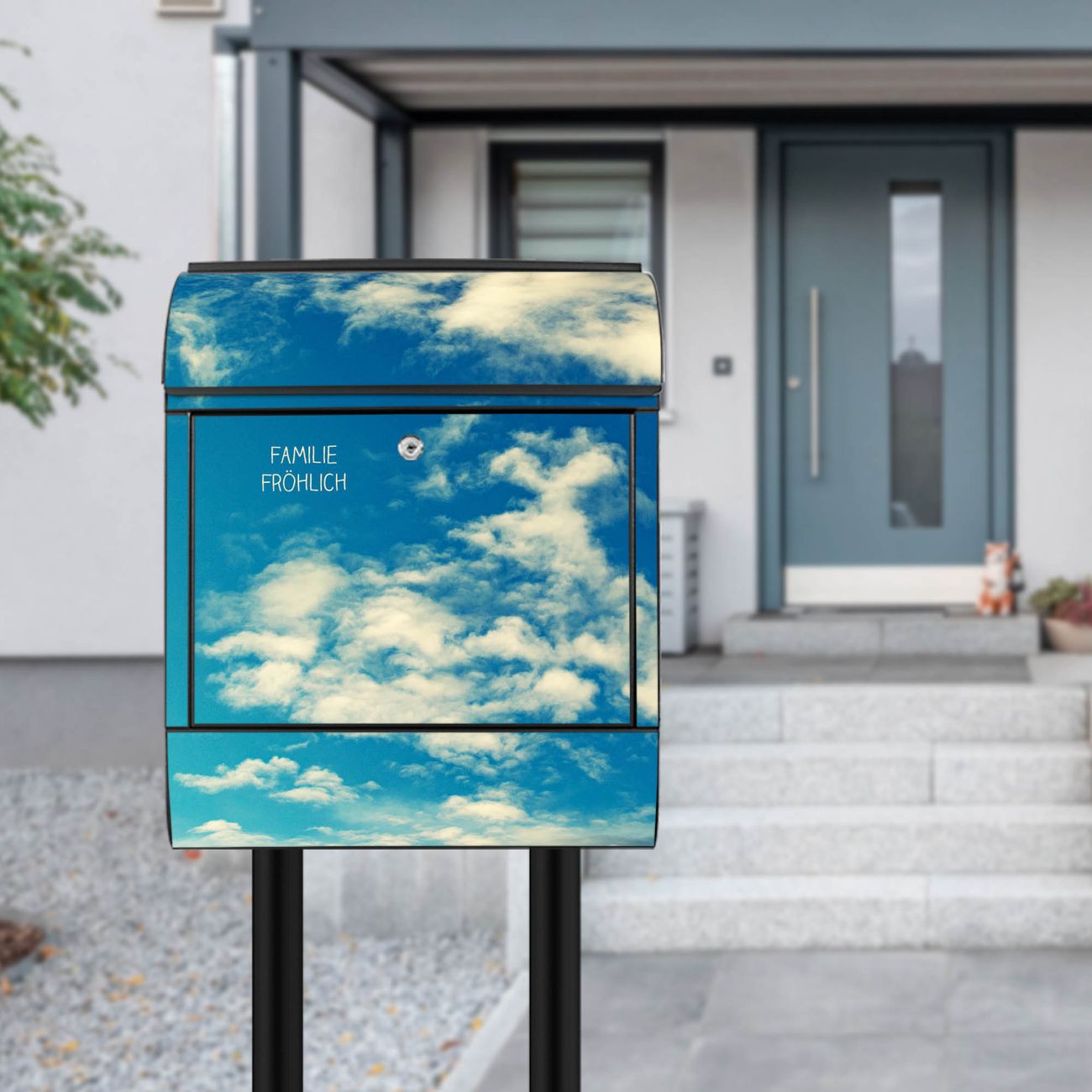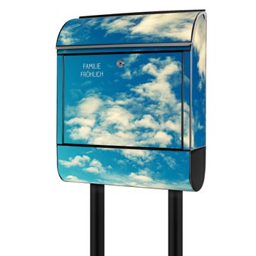 Der banjado Standbriefkasten mit Motiv Motiv Wolken 5 kombiniert großzügigen Stauraum mit modernem Design. Durch das geräumige Fach finden auch große A4-Sendungen problemlos Platz. Die integrierte Zeitungsrolle sorgt dafür, dass Tageszeitungen und Magazine separat und griffbereit untergebracht sind. Der pulverbeschichtete Standfuß ist farblich passend zum Briefkasten gestaltet und sorgt für ein stimmiges Gesamtbild. Mit dem individuellen Motiv setzen Sie einen optischen Akzent, der sowohl praktisch als auch dekorativ ist.
