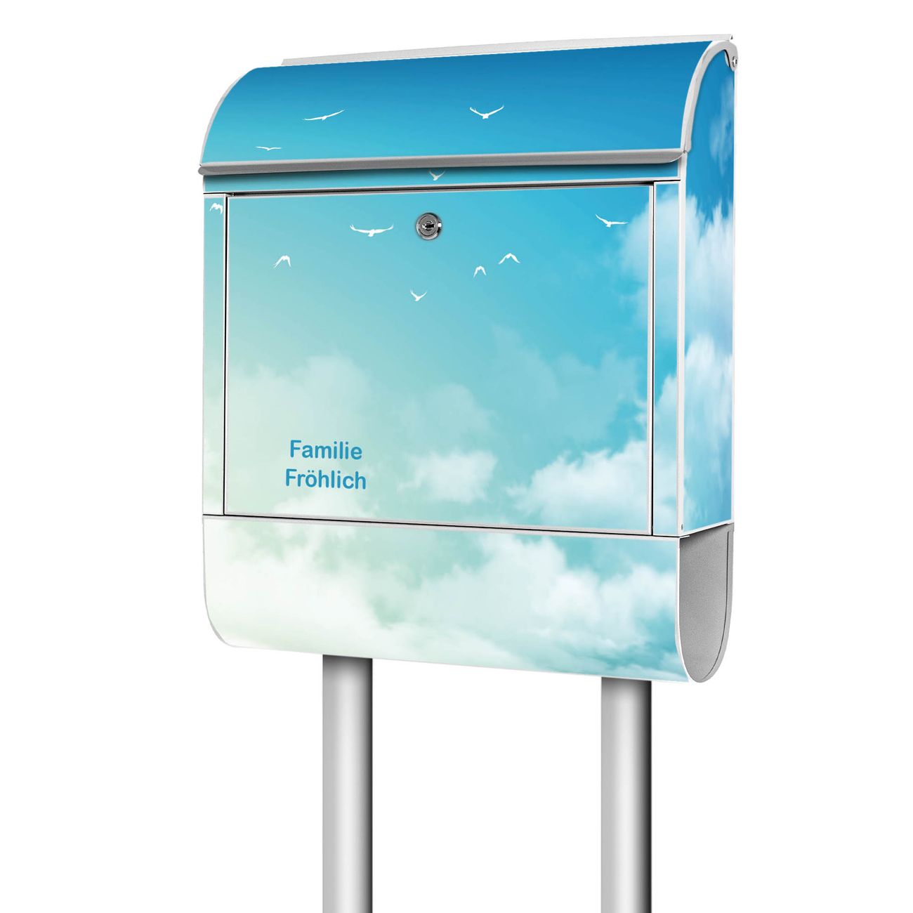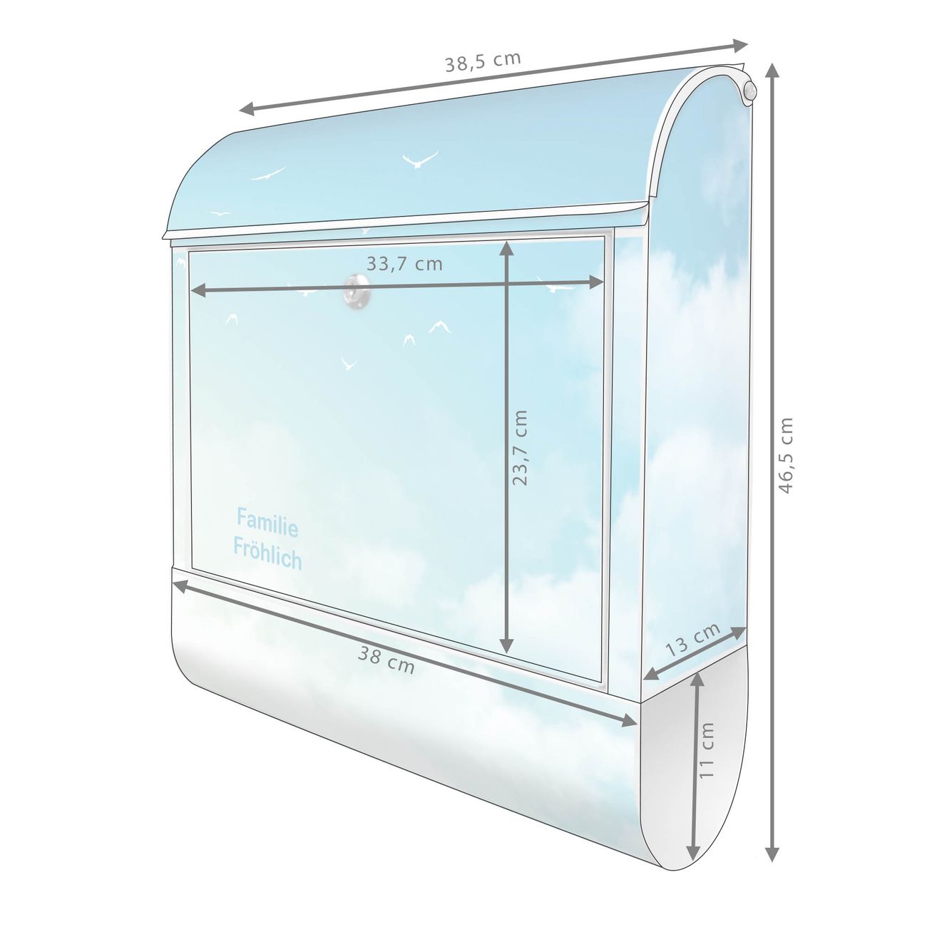 Der banjado Standbriefkasten mit Motiv Motiv Wolken 8 kombiniert großzügigen Stauraum mit modernem Design. Durch das geräumige Fach finden auch große A4-Sendungen problemlos Platz. Die integrierte Zeitungsrolle sorgt dafür, dass Tageszeitungen und Magazine separat und griffbereit untergebracht sind. Der pulverbeschichtete Standfuß ist farblich passend zum Briefkasten gestaltet und sorgt für ein stimmiges Gesamtbild. Mit dem individuellen Motiv setzen Sie einen optischen Akzent, der sowohl praktisch als auch dekorativ ist.