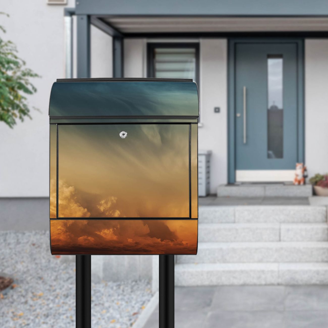 Standbriefkasten Stahl Wolken in der Dämmerung