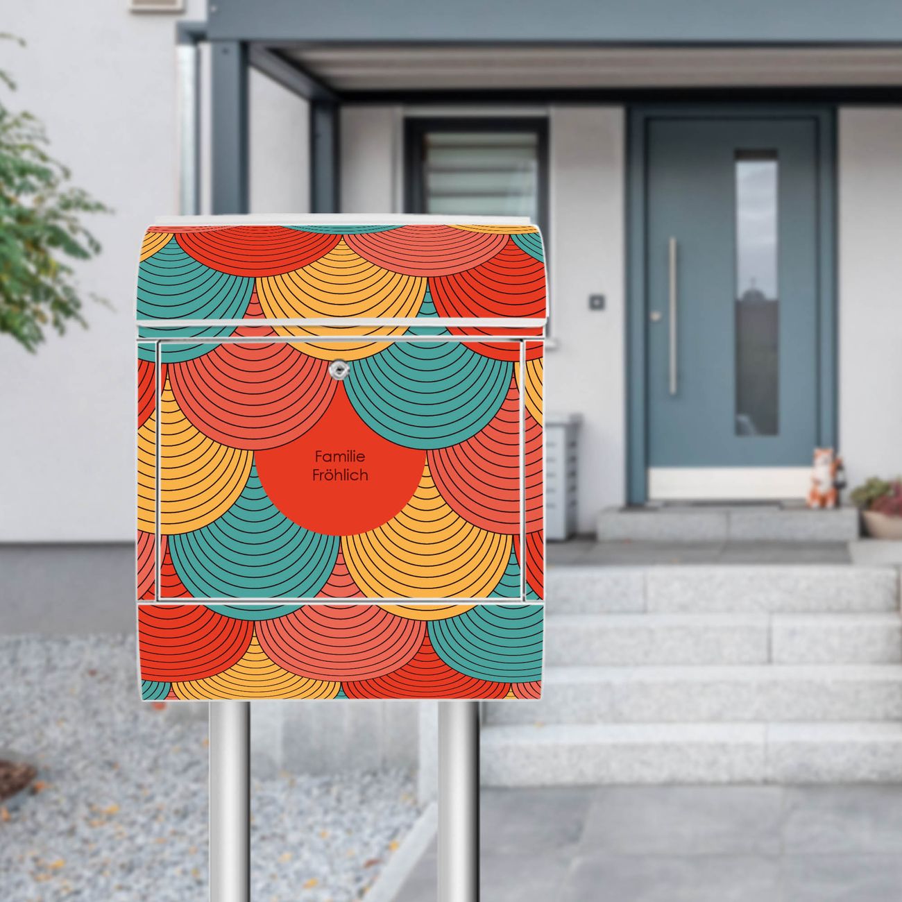 Der Vorschau-Text Familie Fröhlich wird durch Ihren persönlichen Wunschtext ersetzt. Die Schriftart und Farbe bleiben gleich wie in der Vorschau.