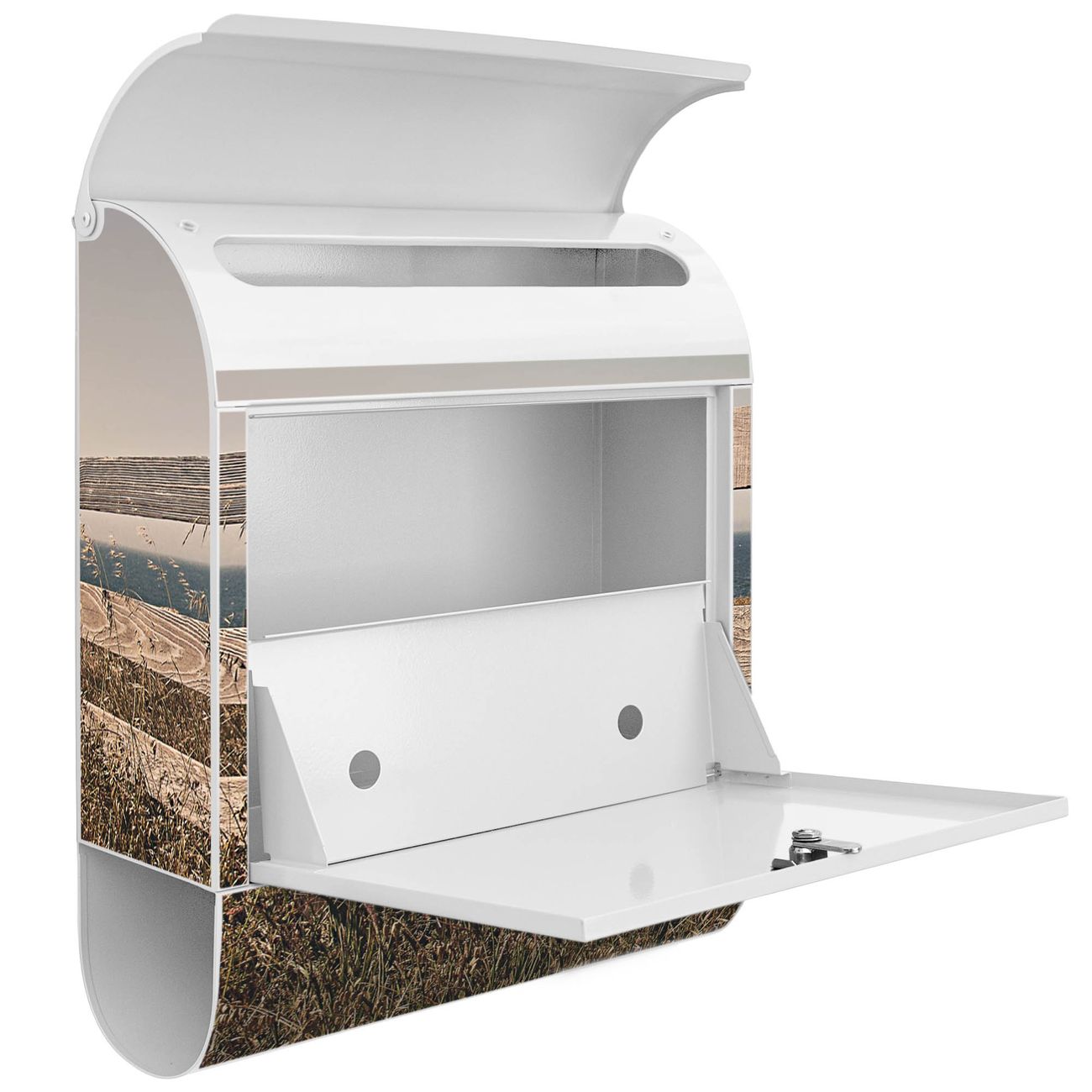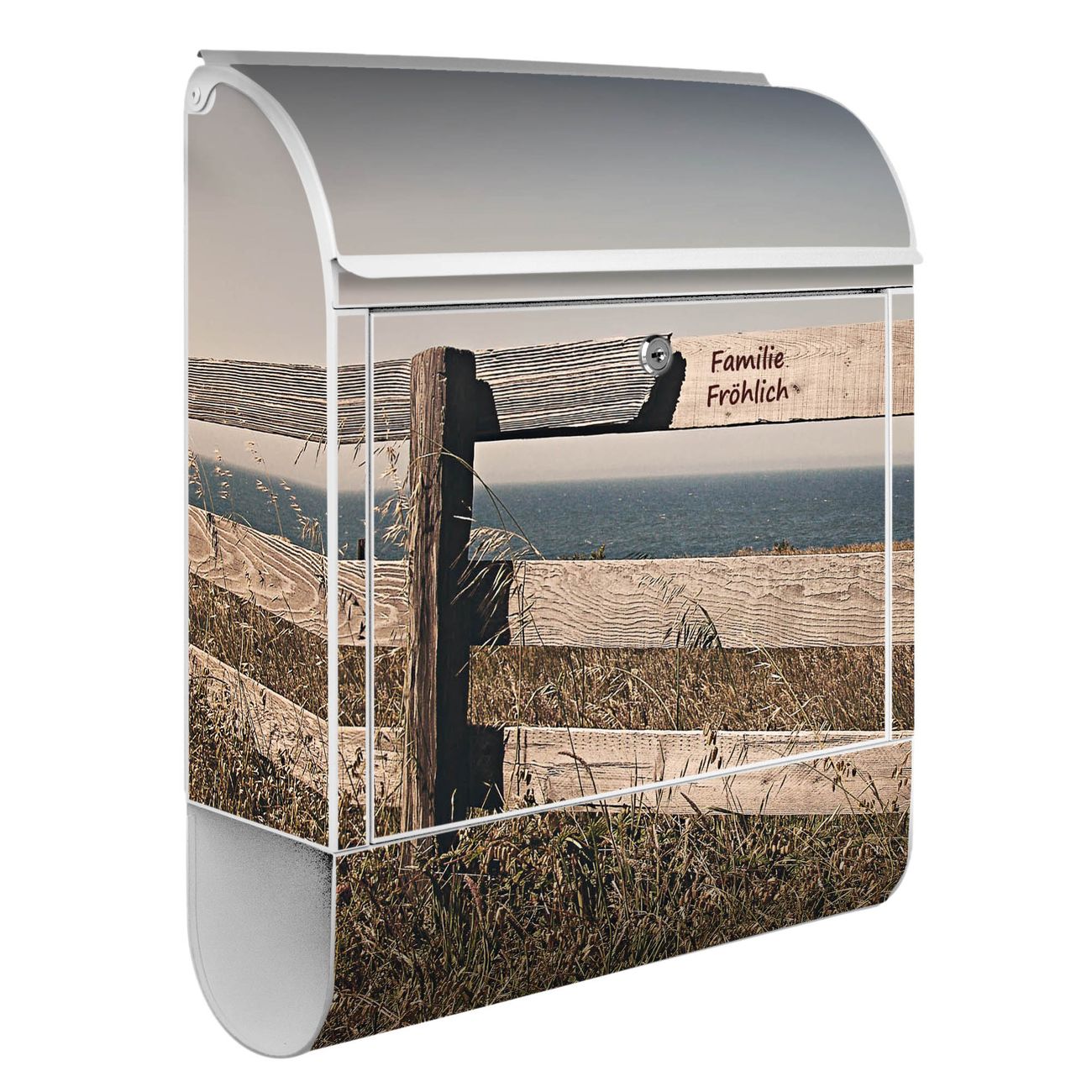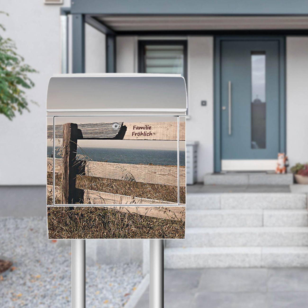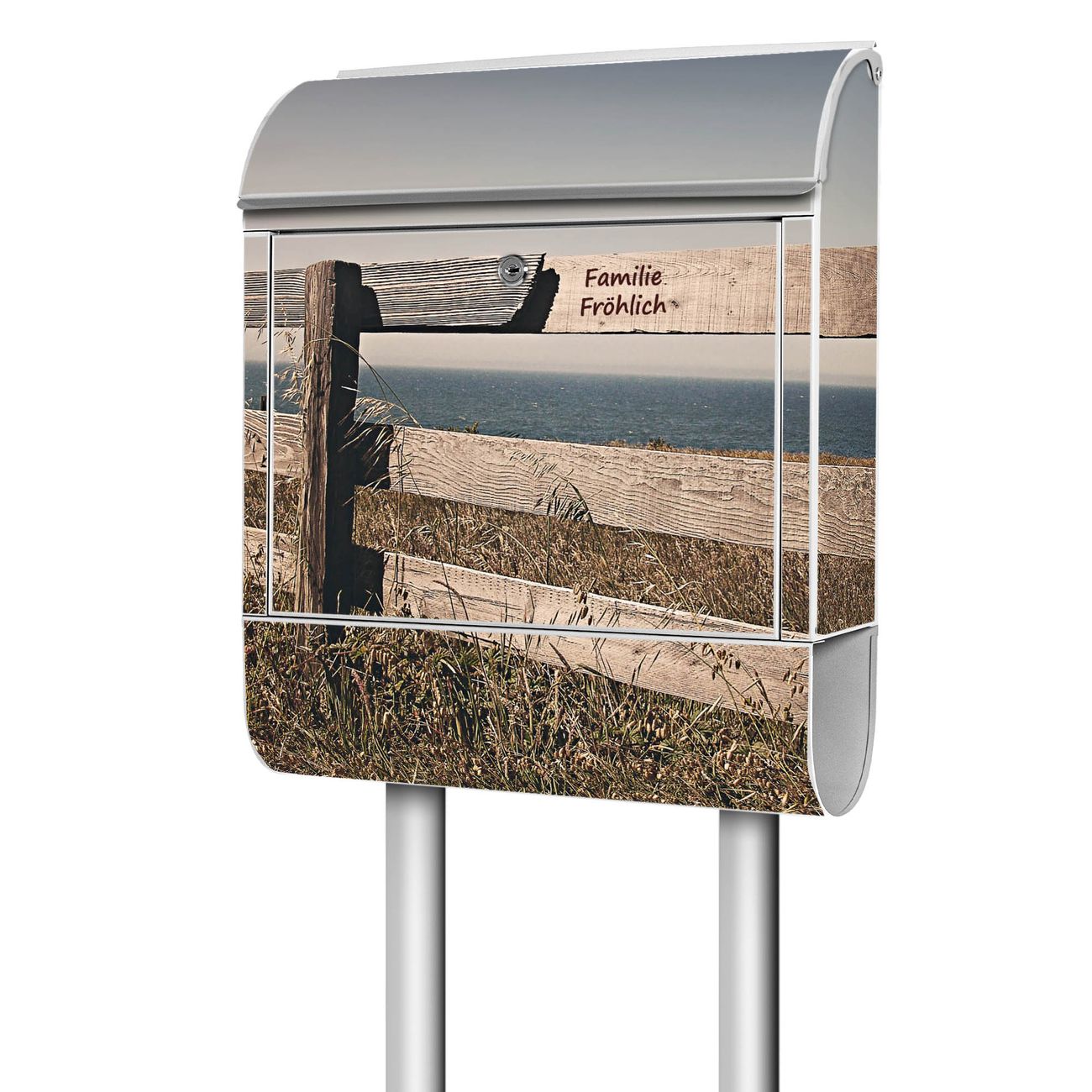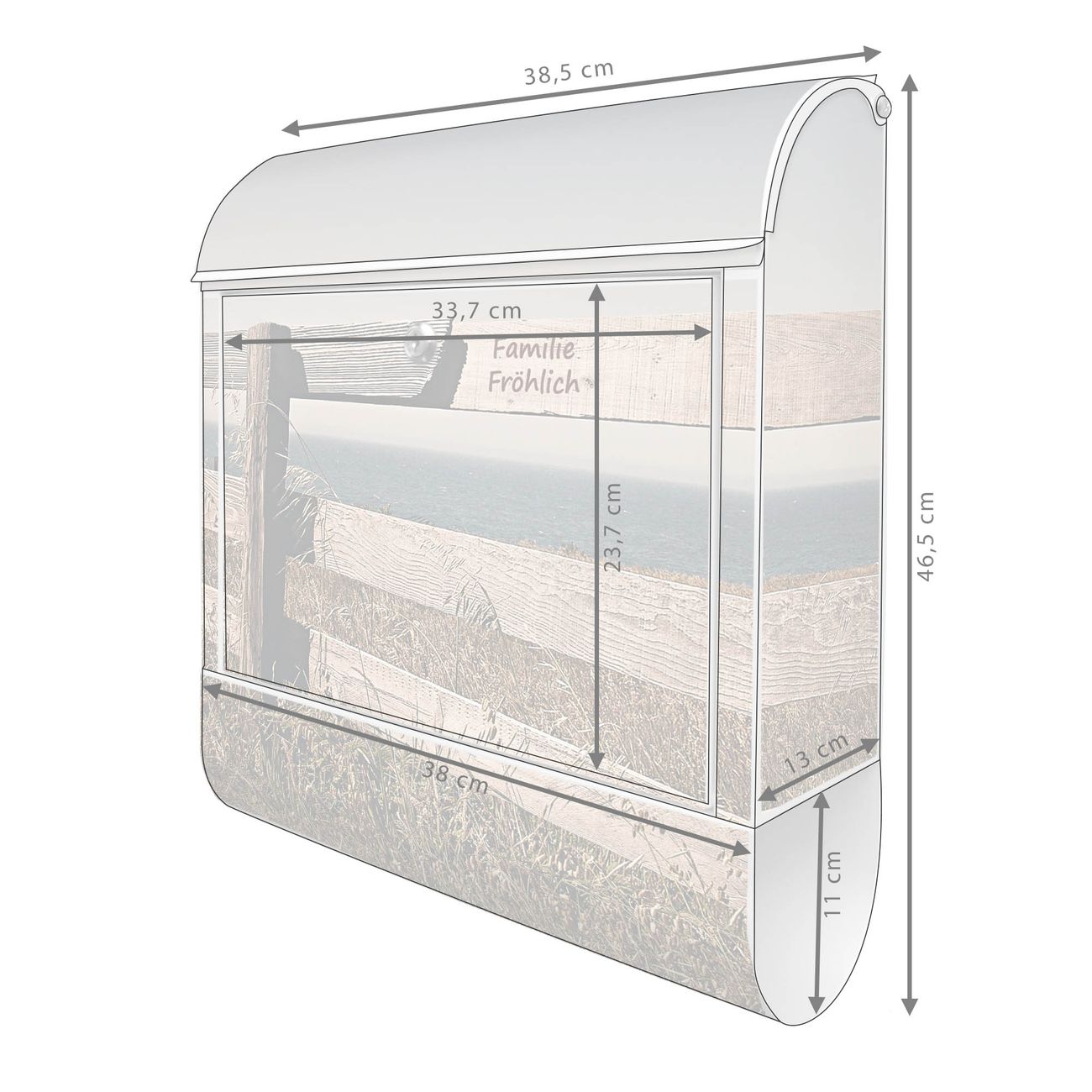 Der banjado Standbriefkasten mit Motiv Motiv Zaun am Meer kombiniert großzügigen Stauraum mit modernem Design. Durch das geräumige Fach finden auch große A4-Sendungen problemlos Platz. Die integrierte Zeitungsrolle sorgt dafür, dass Tageszeitungen und Magazine separat und griffbereit untergebracht sind. Der pulverbeschichtete Standfuß ist farblich passend zum Briefkasten gestaltet und sorgt für ein stimmiges Gesamtbild. Mit dem individuellen Motiv setzen Sie einen optischen Akzent, der sowohl praktisch als auch dekorativ ist.
