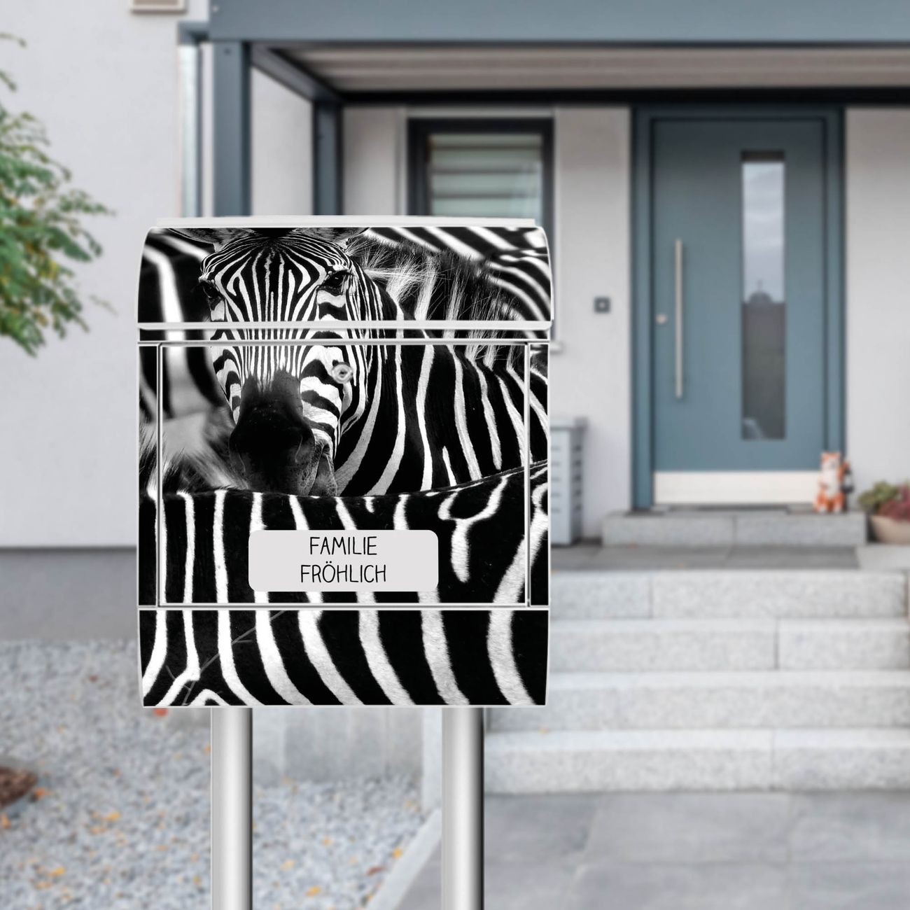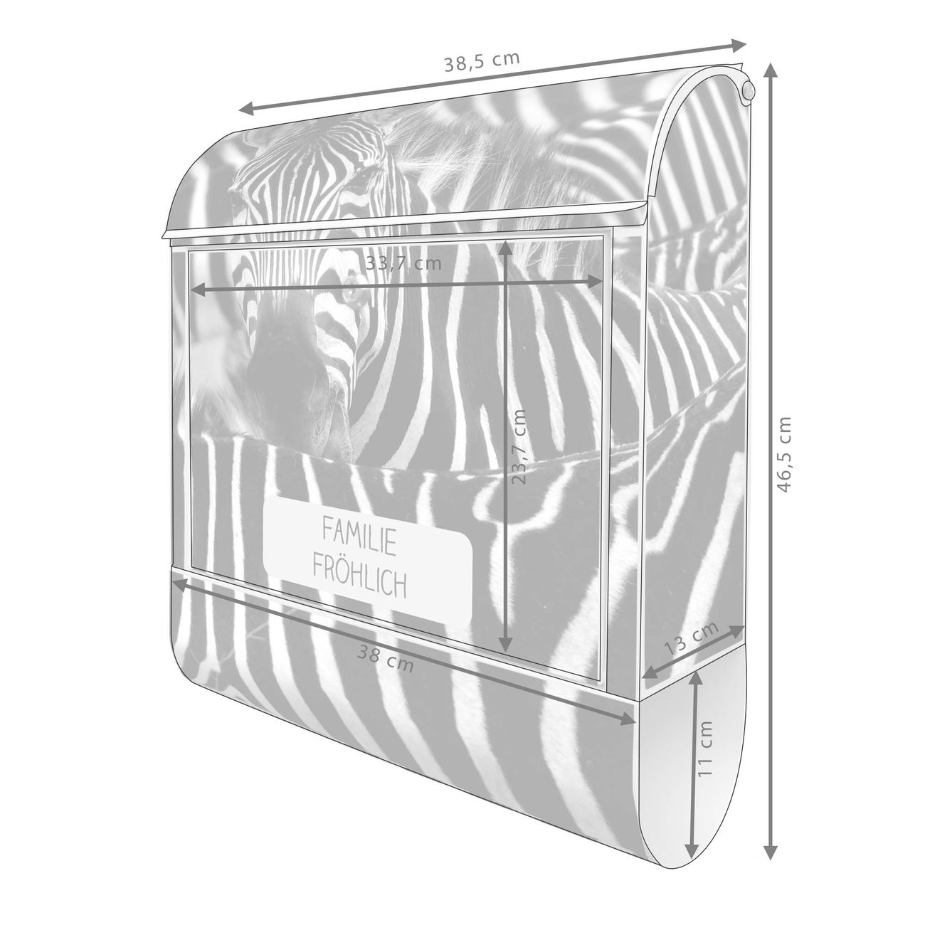 Der banjado Standbriefkasten mit Motiv Motiv Zebras kombiniert großzügigen Stauraum mit modernem Design. Durch das geräumige Fach finden auch große A4-Sendungen problemlos Platz. Die integrierte Zeitungsrolle sorgt dafür, dass Tageszeitungen und Magazine separat und griffbereit untergebracht sind. Der pulverbeschichtete Standfuß ist farblich passend zum Briefkasten gestaltet und sorgt für ein stimmiges Gesamtbild. Mit dem individuellen Motiv setzen Sie einen optischen Akzent, der sowohl praktisch als auch dekorativ ist.