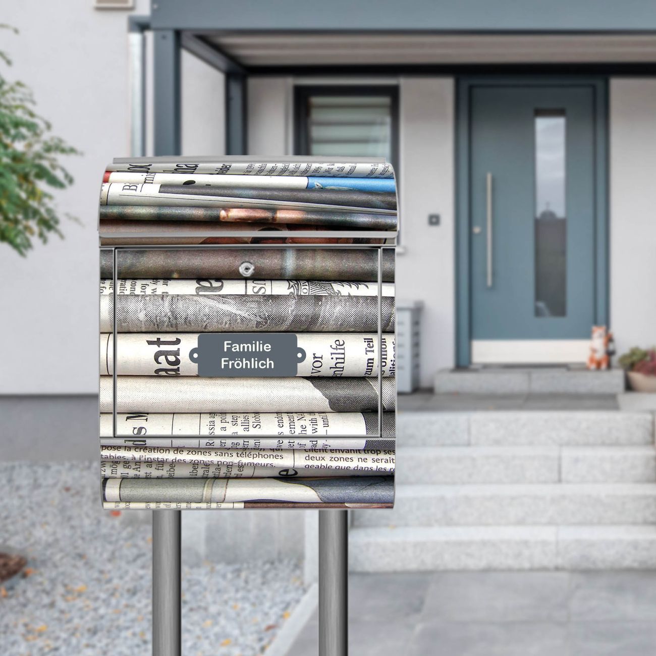 Der banjado Standbriefkasten mit Motiv Motiv Zeitungen kombiniert großzügigen Stauraum mit modernem Design. Durch das geräumige Fach finden auch große A4-Sendungen problemlos Platz. Die integrierte Zeitungsrolle sorgt dafür, dass Tageszeitungen und Magazine separat und griffbereit untergebracht sind. Der pulverbeschichtete Standfuß ist farblich passend zum Briefkasten gestaltet und sorgt für ein stimmiges Gesamtbild. Mit dem individuellen Motiv setzen Sie einen optischen Akzent, der sowohl praktisch als auch dekorativ ist.