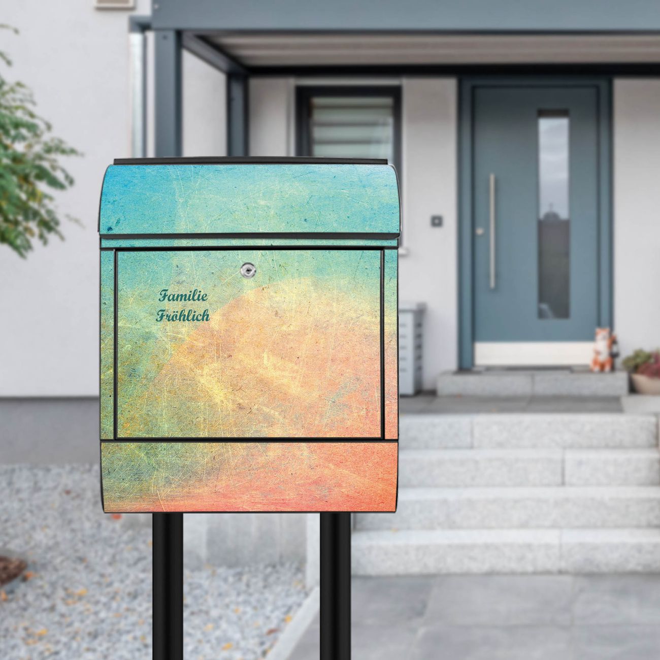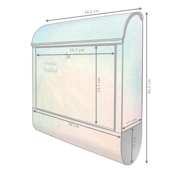 Der Standbriefkasten besteht aus pulverbeschichtetem Stahl und ist insgesamt ca. 161,5 x 47 x 16 cm groß. Das Motiv wird auf eine wetter- und UV-beständige Folie aufgebracht und mit einem robusten Schutzlaminat versiegelt. Damit bleibt die Farbbrillanz auch bei Sonne und Regen lange erhalten. Für einen sicheren Halt empfehlen wir, den Standbriefkasten mindestens 15 cm einzubetonieren. Jeder Briefkasten wird in Sachsen in einer kleinen Manufaktur von Hand veredelt - Sie erhalten ein Stück langlebige Handarbeit, das Funktionalität und Design vereint.