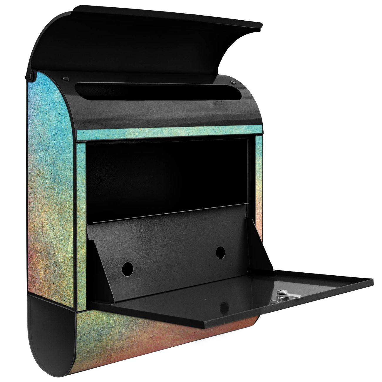 Der banjado Standbriefkasten mit Motiv Motiv Zerkratzt 2 kombiniert großzügigen Stauraum mit modernem Design. Durch das geräumige Fach finden auch große A4-Sendungen problemlos Platz. Die integrierte Zeitungsrolle sorgt dafür, dass Tageszeitungen und Magazine separat und griffbereit untergebracht sind. Der pulverbeschichtete Standfuß ist farblich passend zum Briefkasten gestaltet und sorgt für ein stimmiges Gesamtbild. Mit dem individuellen Motiv setzen Sie einen optischen Akzent, der sowohl praktisch als auch dekorativ ist.
