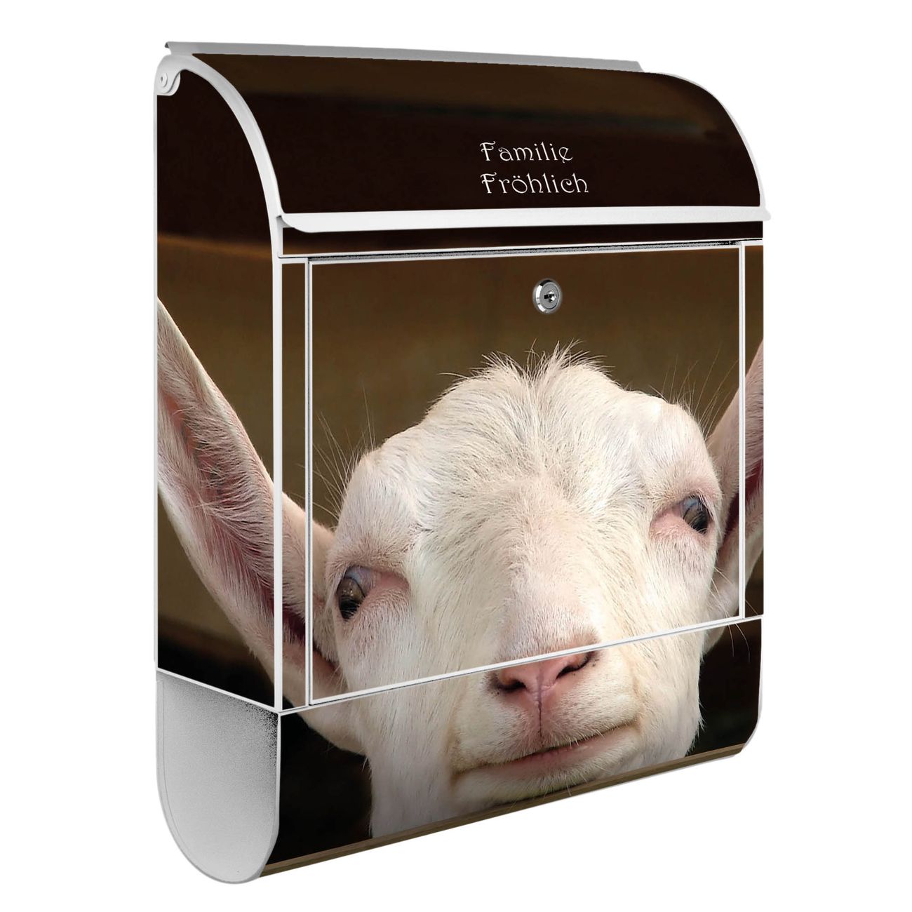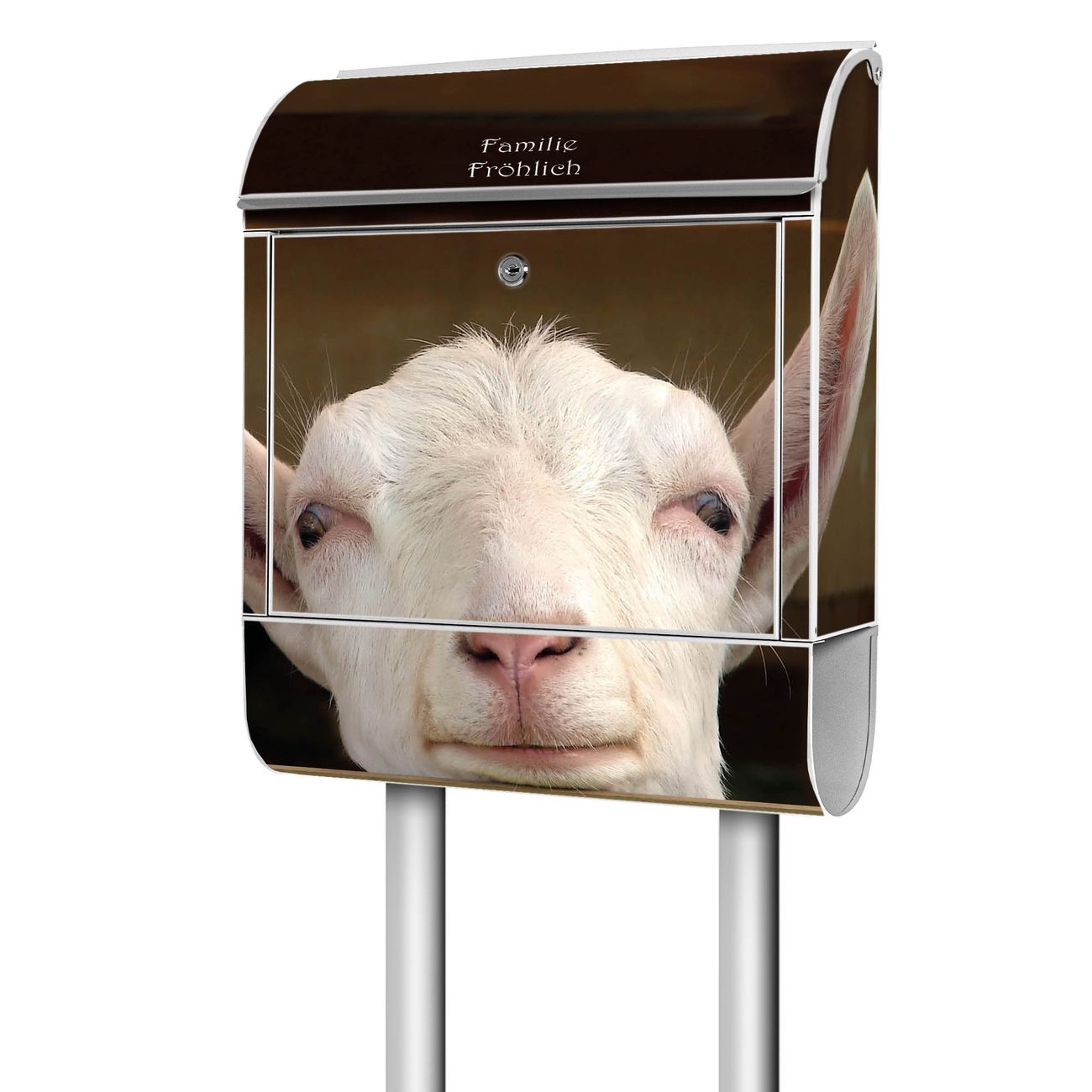 Der banjado Standbriefkasten mit Motiv Motiv Ziege kombiniert großzügigen Stauraum mit modernem Design. Durch das geräumige Fach finden auch große A4-Sendungen problemlos Platz. Die integrierte Zeitungsrolle sorgt dafür, dass Tageszeitungen und Magazine separat und griffbereit untergebracht sind. Der pulverbeschichtete Standfuß ist farblich passend zum Briefkasten gestaltet und sorgt für ein stimmiges Gesamtbild. Mit dem individuellen Motiv setzen Sie einen optischen Akzent, der sowohl praktisch als auch dekorativ ist.