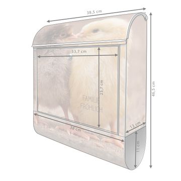 Der banjado Standbriefkasten mit Motiv Motiv Zwei Küken kombiniert großzügigen Stauraum mit modernem Design. Durch das geräumige Fach finden auch große A4-Sendungen problemlos Platz. Die integrierte Zeitungsrolle sorgt dafür, dass Tageszeitungen und Magazine separat und griffbereit untergebracht sind. Der pulverbeschichtete Standfuß ist farblich passend zum Briefkasten gestaltet und sorgt für ein stimmiges Gesamtbild. Mit dem individuellen Motiv setzen Sie einen optischen Akzent, der sowohl praktisch als auch dekorativ ist.