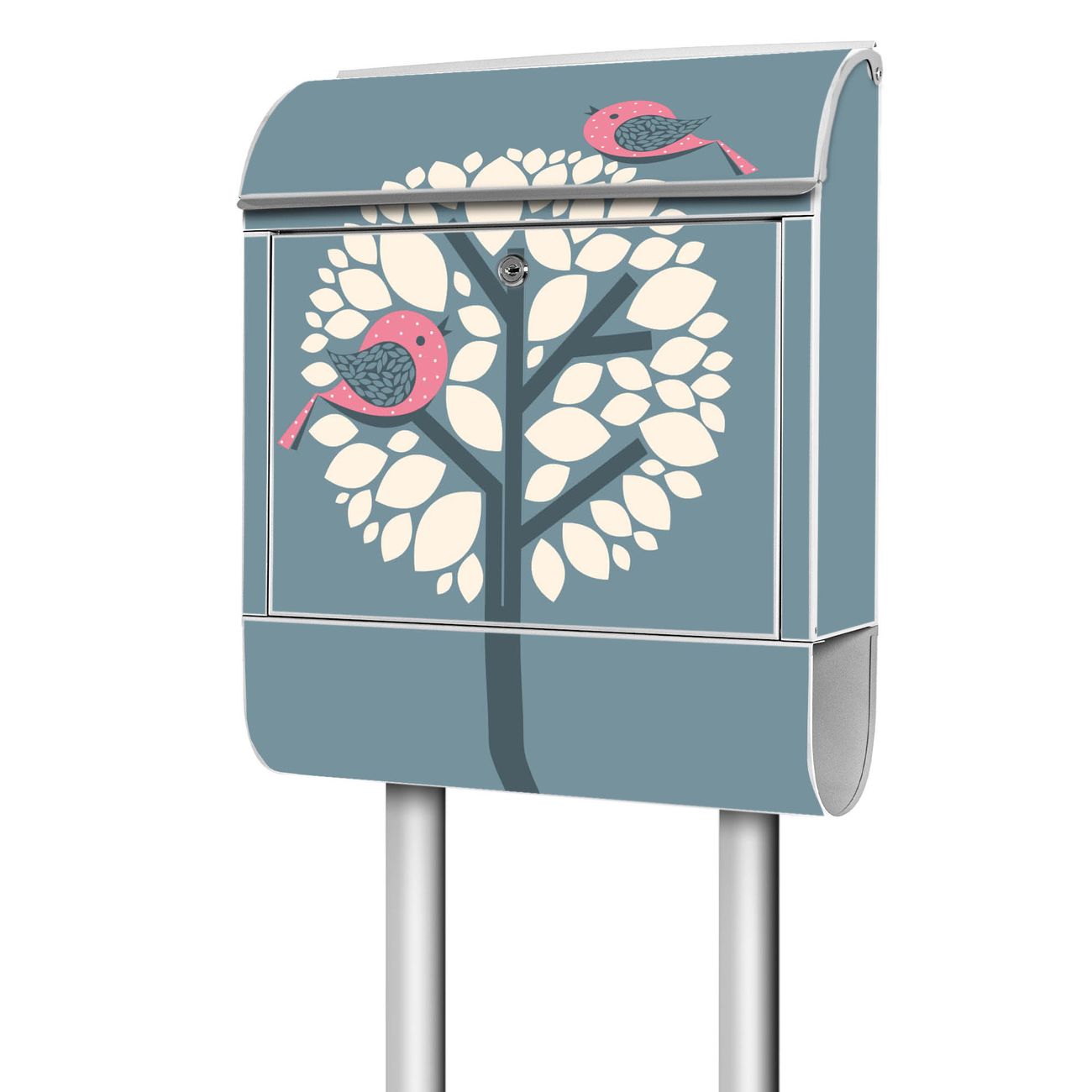 Standbriefkasten Stahl Zwei Rosa Vögel