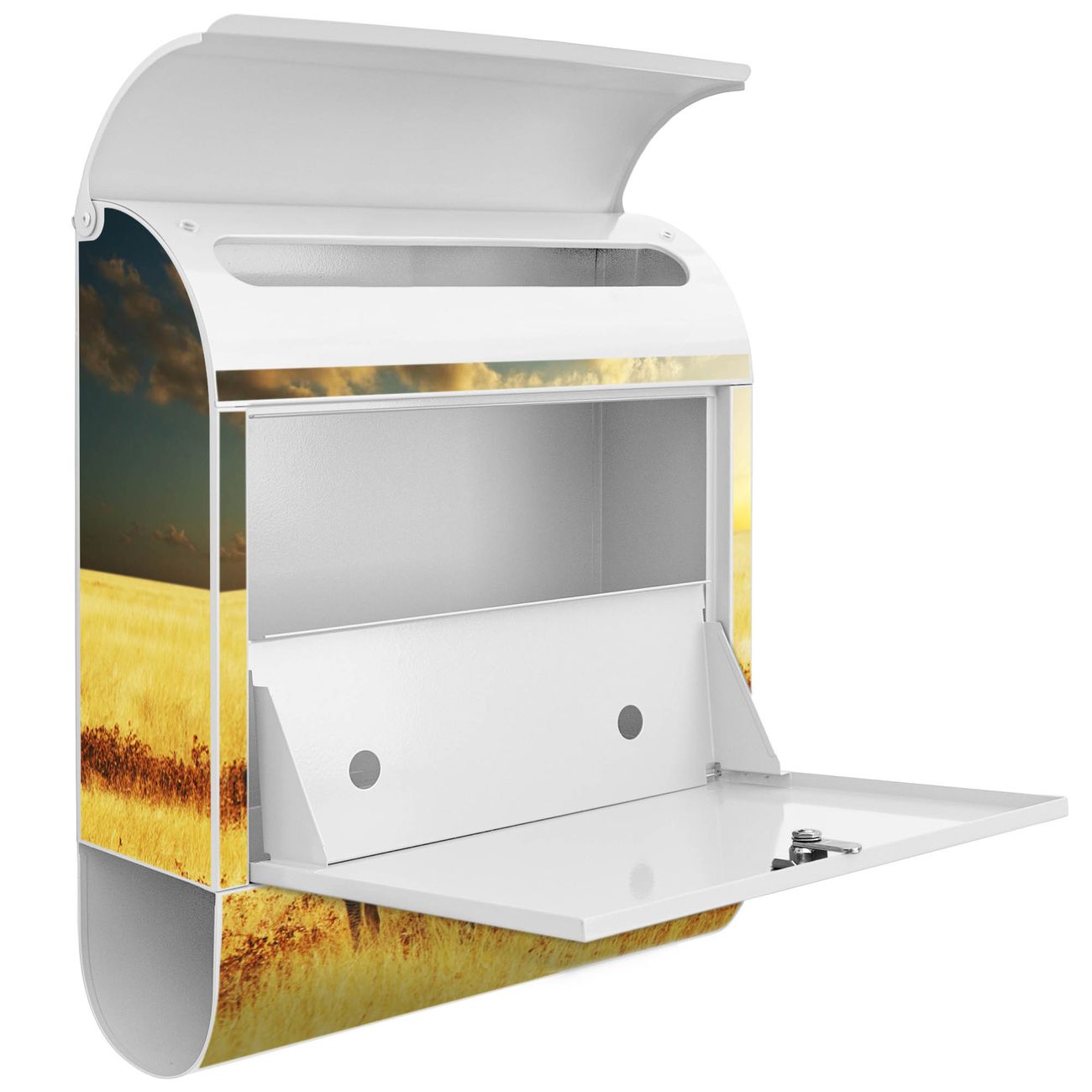 Der Standbriefkasten besteht aus pulverbeschichtetem Stahl und ist insgesamt ca. 161,5 x 47 x 16 cm groß. Das Motiv wird auf eine wetter- und UV-beständige Folie aufgebracht und mit einem robusten Schutzlaminat versiegelt. Damit bleibt die Farbbrillanz auch bei Sonne und Regen lange erhalten. Für einen sicheren Halt empfehlen wir, den Standbriefkasten mindestens 15 cm einzubetonieren. Jeder Briefkasten wird in Sachsen in einer kleinen Manufaktur von Hand veredelt - Sie erhalten ein Stück langlebige Handarbeit, das Funktionalität und Design vereint.