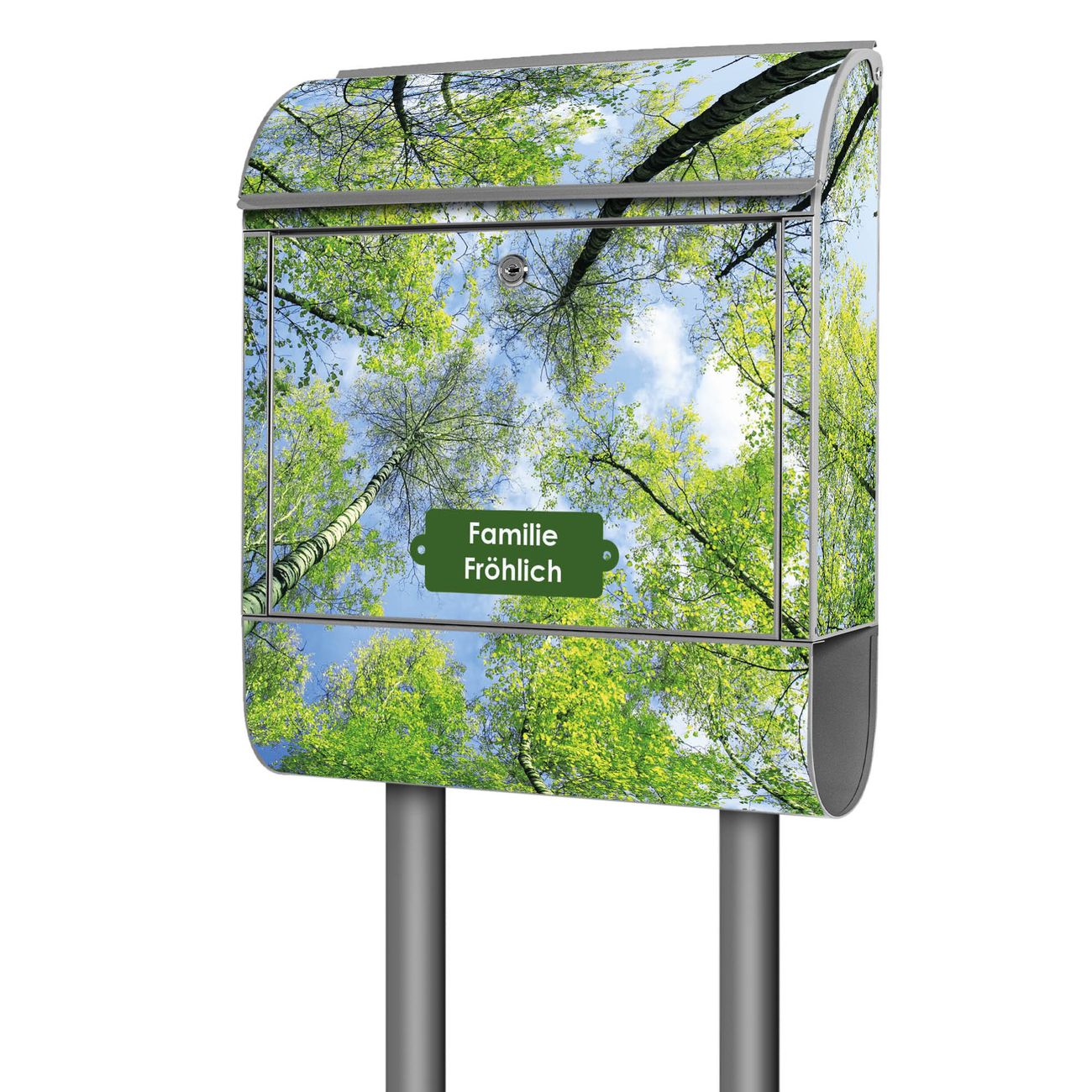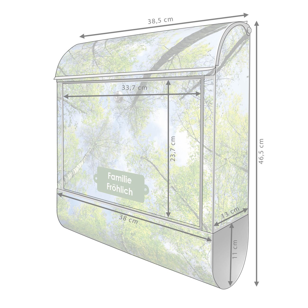 Der banjado Standbriefkasten mit Motiv Motiv Zwischen Bäumen 3 kombiniert großzügigen Stauraum mit modernem Design. Durch das geräumige Fach finden auch große A4-Sendungen problemlos Platz. Die integrierte Zeitungsrolle sorgt dafür, dass Tageszeitungen und Magazine separat und griffbereit untergebracht sind. Der pulverbeschichtete Standfuß ist farblich passend zum Briefkasten gestaltet und sorgt für ein stimmiges Gesamtbild. Mit dem individuellen Motiv setzen Sie einen optischen Akzent, der sowohl praktisch als auch dekorativ ist.