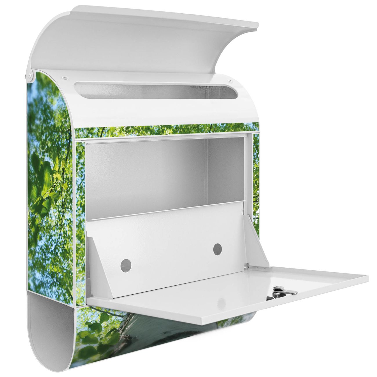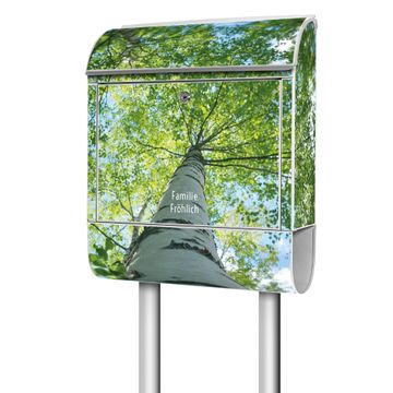 Der banjado Standbriefkasten mit Motiv Motiv Zwischen Bäumen 5 kombiniert großzügigen Stauraum mit modernem Design. Durch das geräumige Fach finden auch große A4-Sendungen problemlos Platz. Die integrierte Zeitungsrolle sorgt dafür, dass Tageszeitungen und Magazine separat und griffbereit untergebracht sind. Der pulverbeschichtete Standfuß ist farblich passend zum Briefkasten gestaltet und sorgt für ein stimmiges Gesamtbild. Mit dem individuellen Motiv setzen Sie einen optischen Akzent, der sowohl praktisch als auch dekorativ ist.