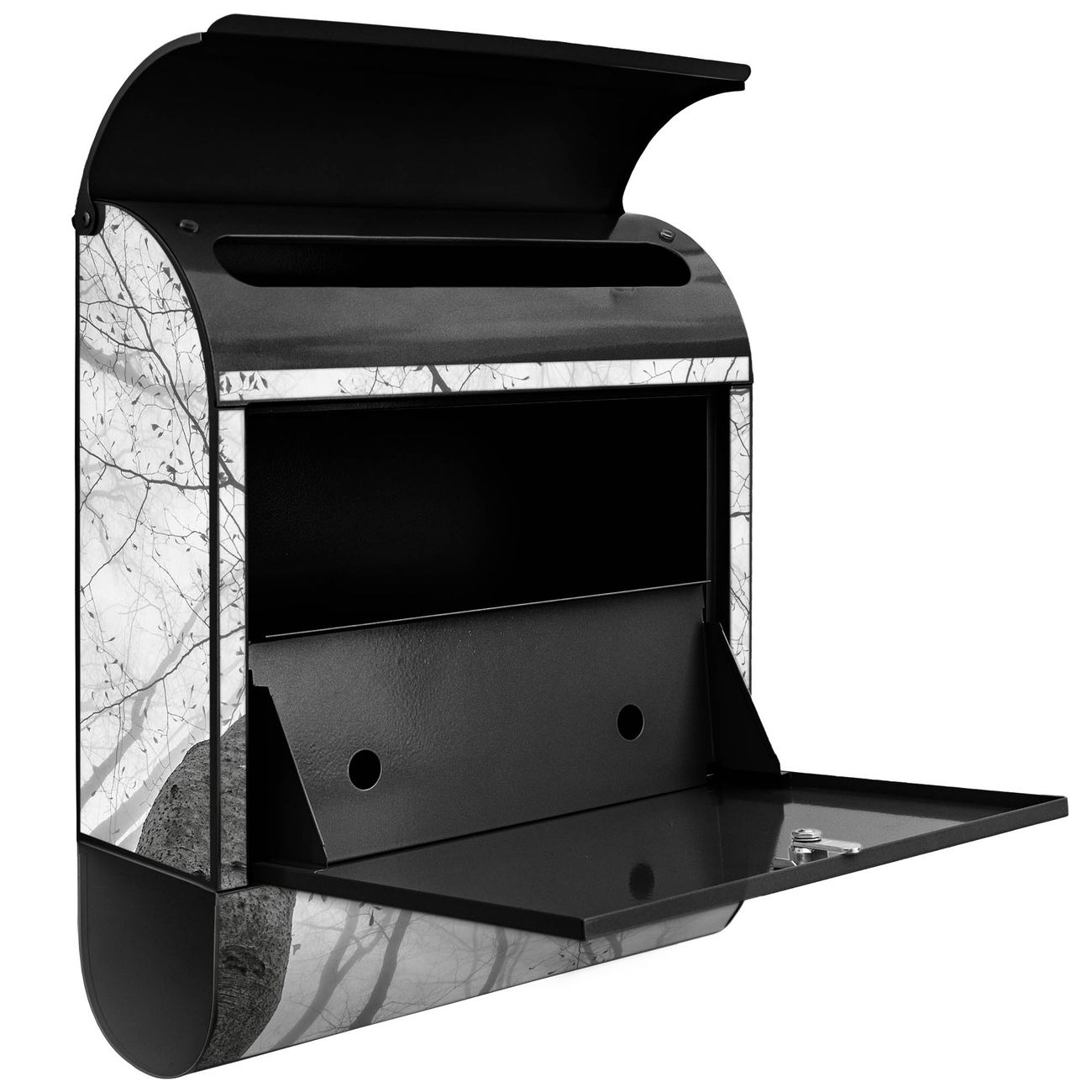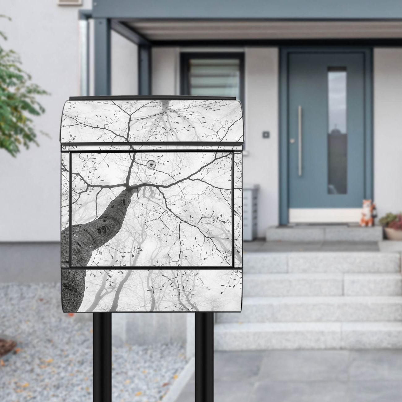 Der banjado Standbriefkasten mit Motiv Motiv Zwischen Bäumen 6 kombiniert großzügigen Stauraum mit modernem Design. Durch das geräumige Fach finden auch große A4-Sendungen problemlos Platz. Die integrierte Zeitungsrolle sorgt dafür, dass Tageszeitungen und Magazine separat und griffbereit untergebracht sind. Der pulverbeschichtete Standfuß ist farblich passend zum Briefkasten gestaltet und sorgt für ein stimmiges Gesamtbild. Mit dem individuellen Motiv setzen Sie einen optischen Akzent, der sowohl praktisch als auch dekorativ ist.