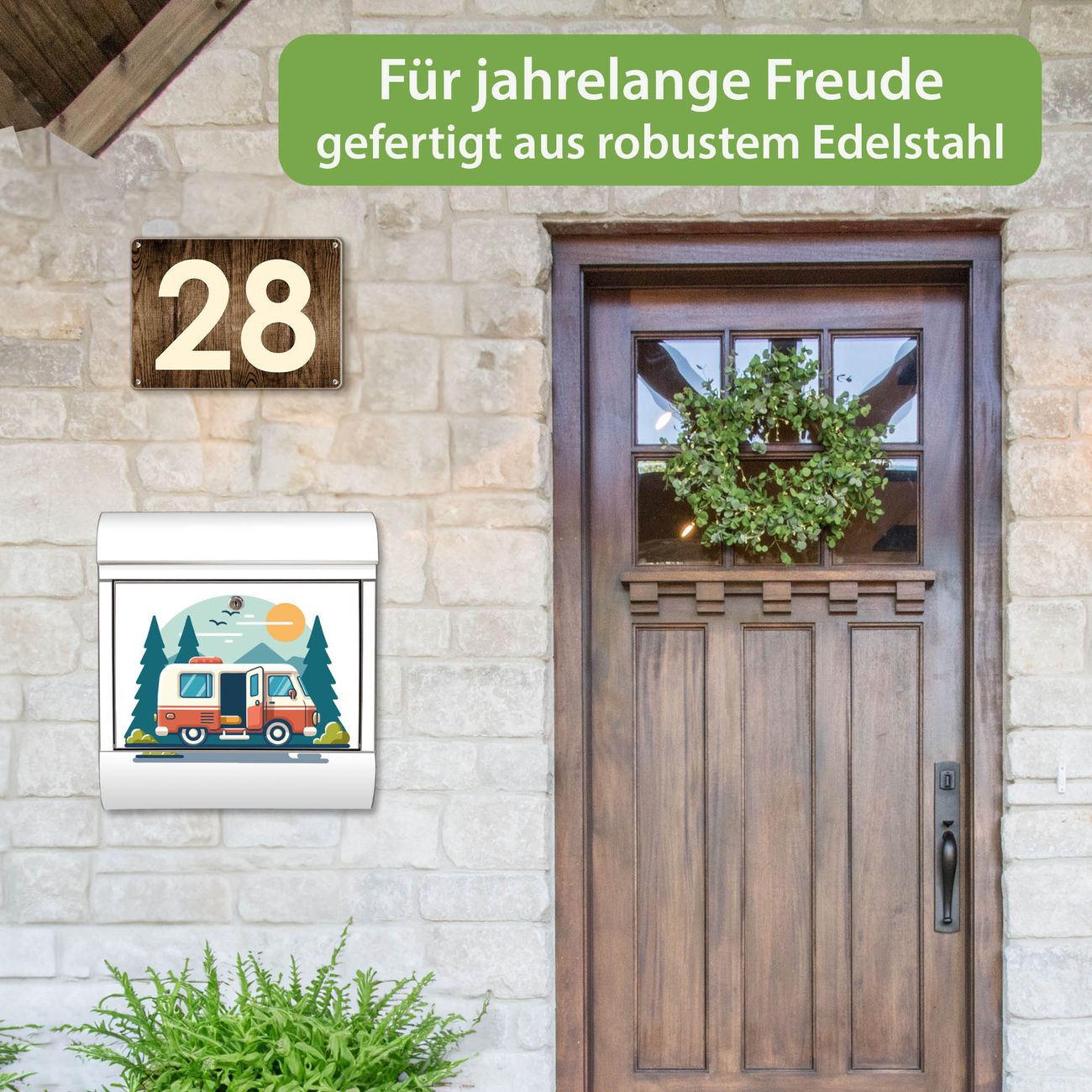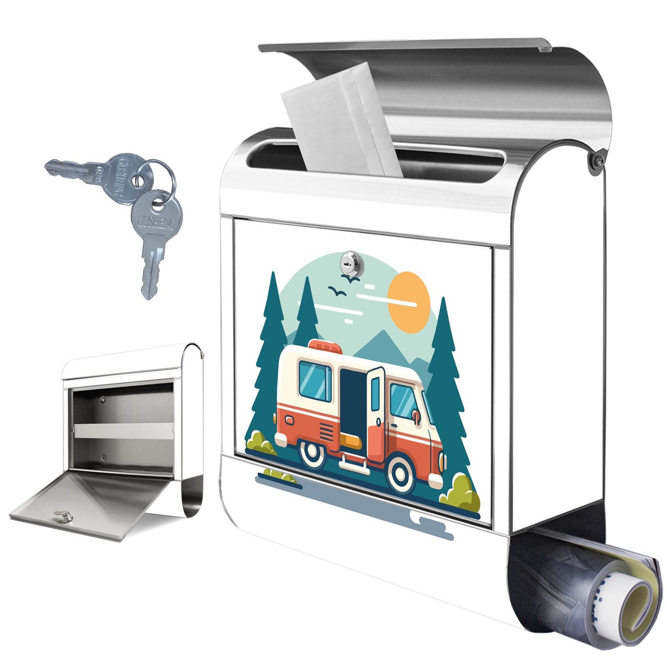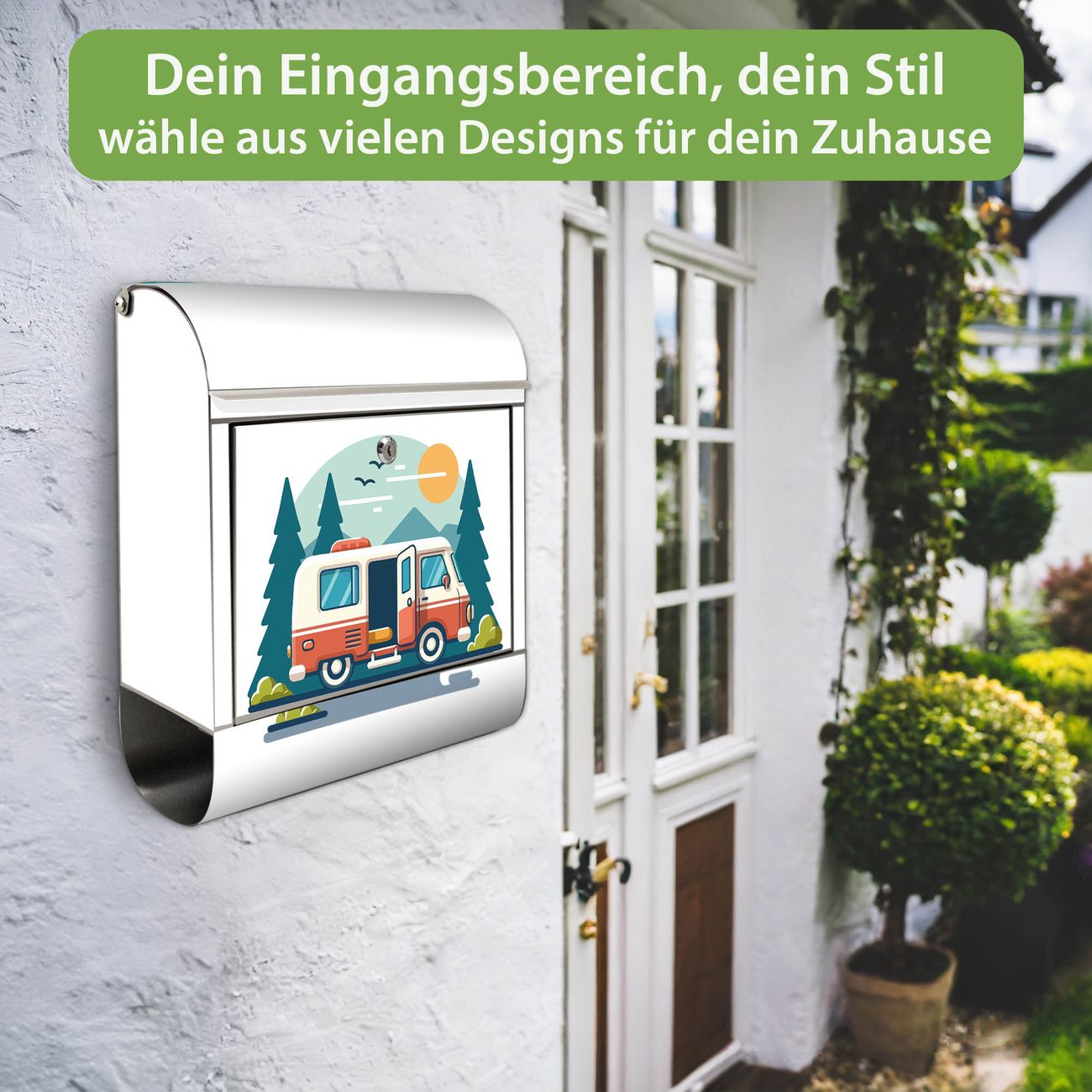 Wandbriefkasten Edelstahl Motiv Abenteuer Reise