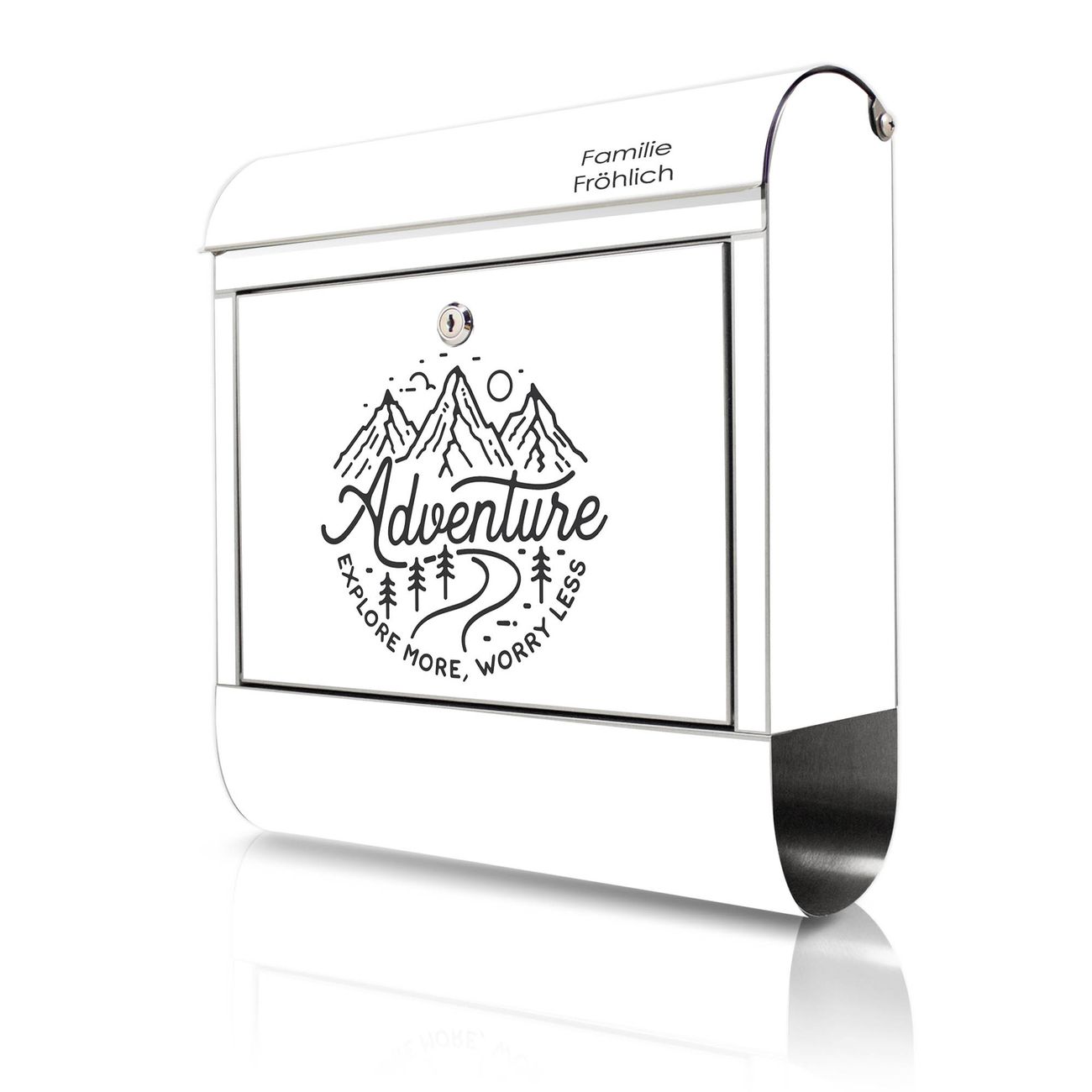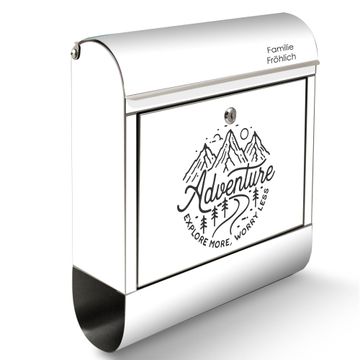 Wandbriefkasten Edelstahl Motiv Abenteuerliche Bergskizze mit Spruch