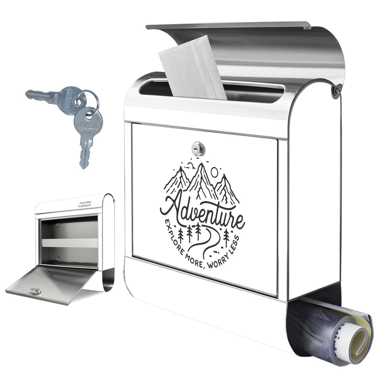 FUNKTION: Der banjado Edelstahl Briefkasten mit Motiv Motiv Abenteuerliche Bergskizze mit Spruch bietet Ihnen mit seinem Fassungsvermögen genügend Platz auch für große A4 Sendungen. Das integrierte Zeitungsfach eignet sich hervorragend um unkompliziert die Tageszeitung zu fassen. Auf Wunsch können Sie bei uns den passenden Ständer kaufen und so aus dem Wandbriefkasten einen Standbriefkasten machen. DESIGN: Der Motivbriefkasten hat ein sehr ansprechendes und ausgefallenes Design, damit entlocken Sie Ihren Nachbarn und dem Postboten ein Lächeln. Heben Sie Sich ab von der tristen grauen Masse ohne auf Funktionalität zu verzichten. DETAILS: Der Design Briefkasten mit Motiv Motiv Abenteuerliche Bergskizze mit Spruch besteht aus hochwertigem 18/0 Edelstahl. Das Motiv besteht aus einer wetter- und UV-resistenten Folie, die mit einem Schutzlaminat überzogen ist. Der Briefkasten wird mit Montagematerial und zwei Schlüsseln geliefert. NUTZEN: Sie können diesen Briefkasten sowohl als Wandbriefkasten montieren oder einen passenden Ständer auswählen und als Standbriefkasten einbetonieren. Die Größe bietet genügend Platz für Sendungen aller Art, das hochwertige Edelstahl ist rostfrei und die Motivfolie absolut wetterfest. SCHUTZ: Um Ihre Post optimal vor Witterungseinflüssen wie Starkregen zu schützen, empfehlen wir, den Briefkasten geschützt anzubringen. BANJADO: Ihr Briefkasten wird in Sachsen in einer kleinen Manufaktur von Hand veredelt. Die Motivfolie ist lösungsmittelfrei und schutzlaminiert, dies sorgt für einen langen Halt. Wir legen großen Wert auf die Verbindung von Funktionalität und Design. Sie erhalten Handarbeit aus Sachsen.