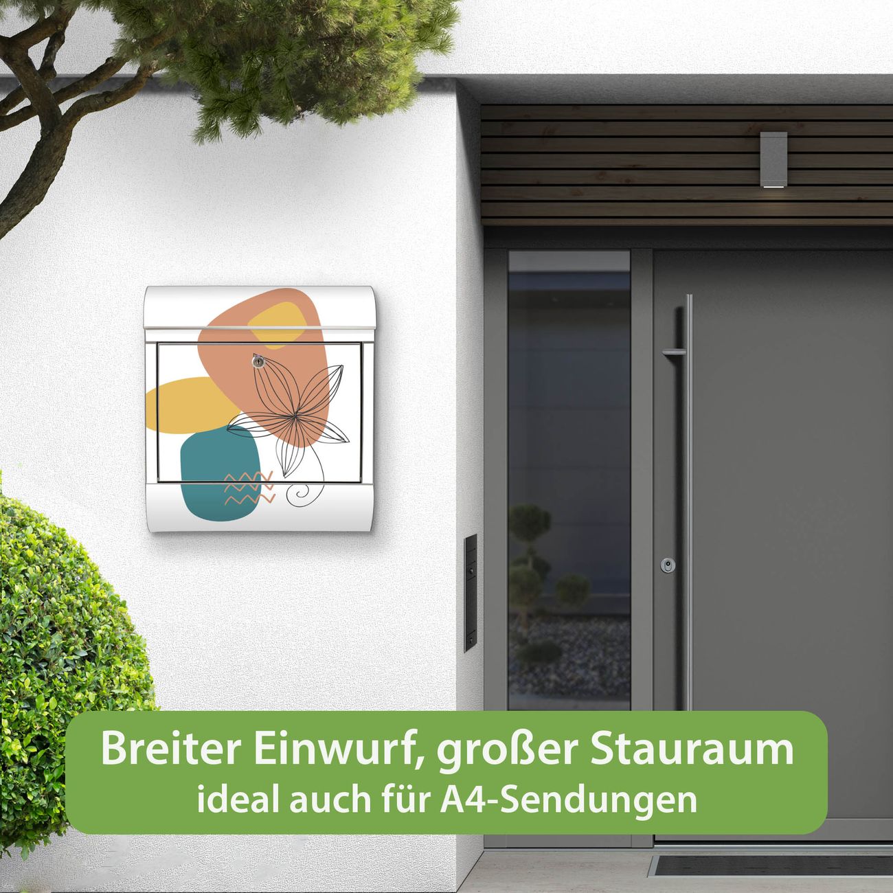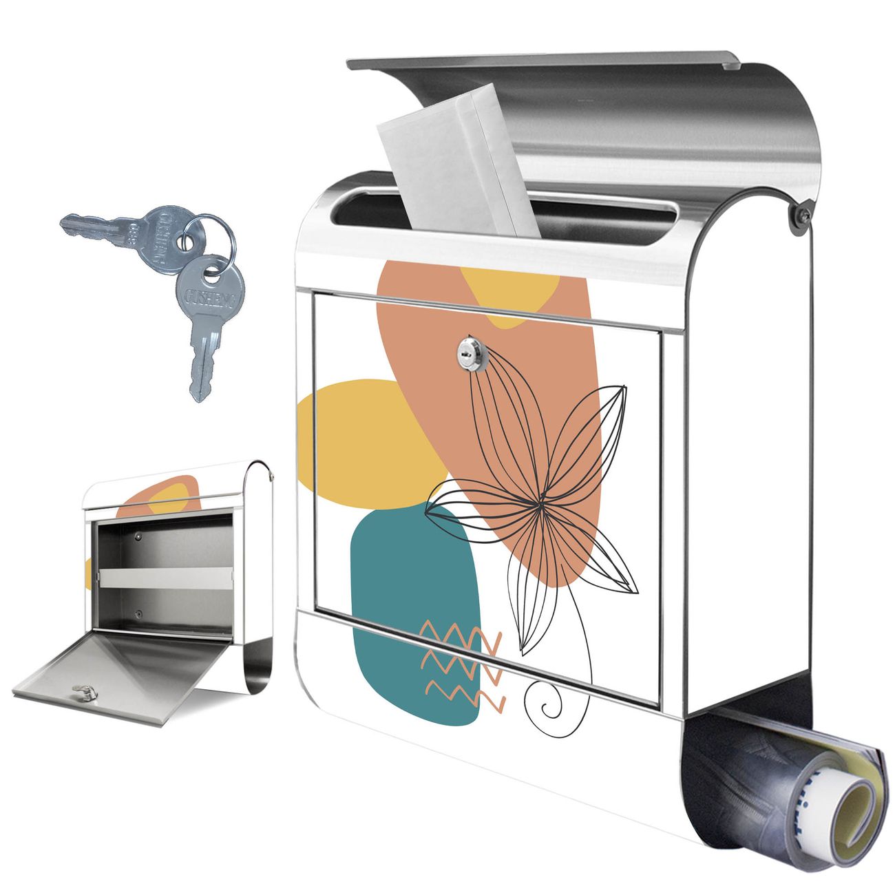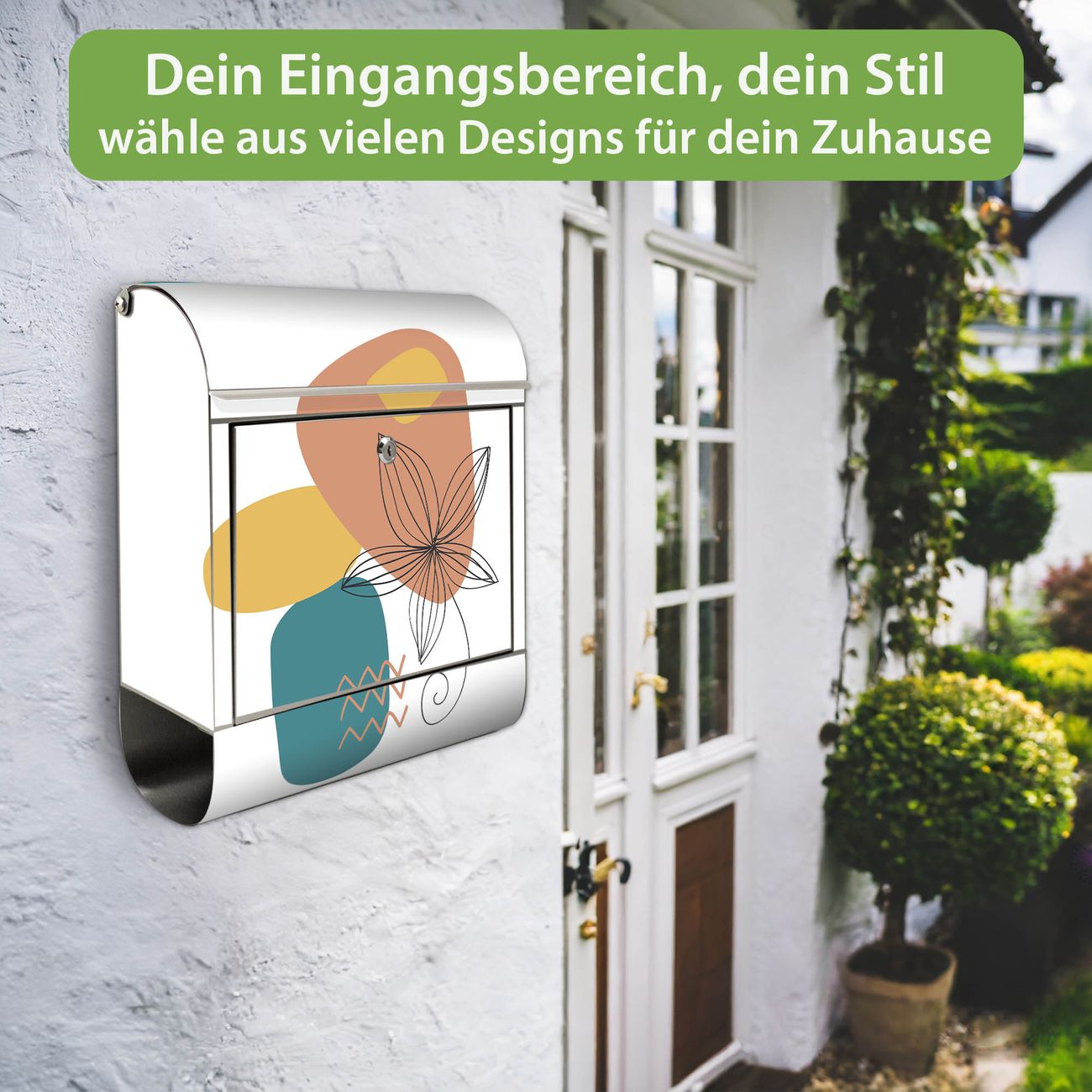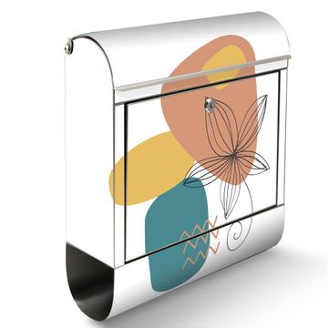 Wandbriefkasten Edelstahl Motiv Abstrakte Blumen Lineart