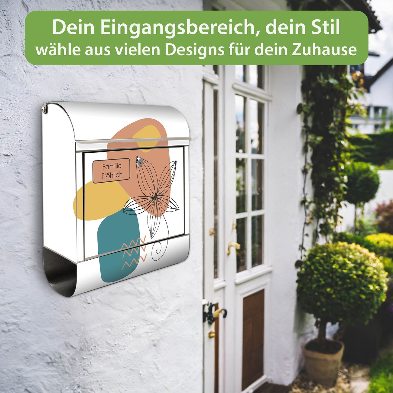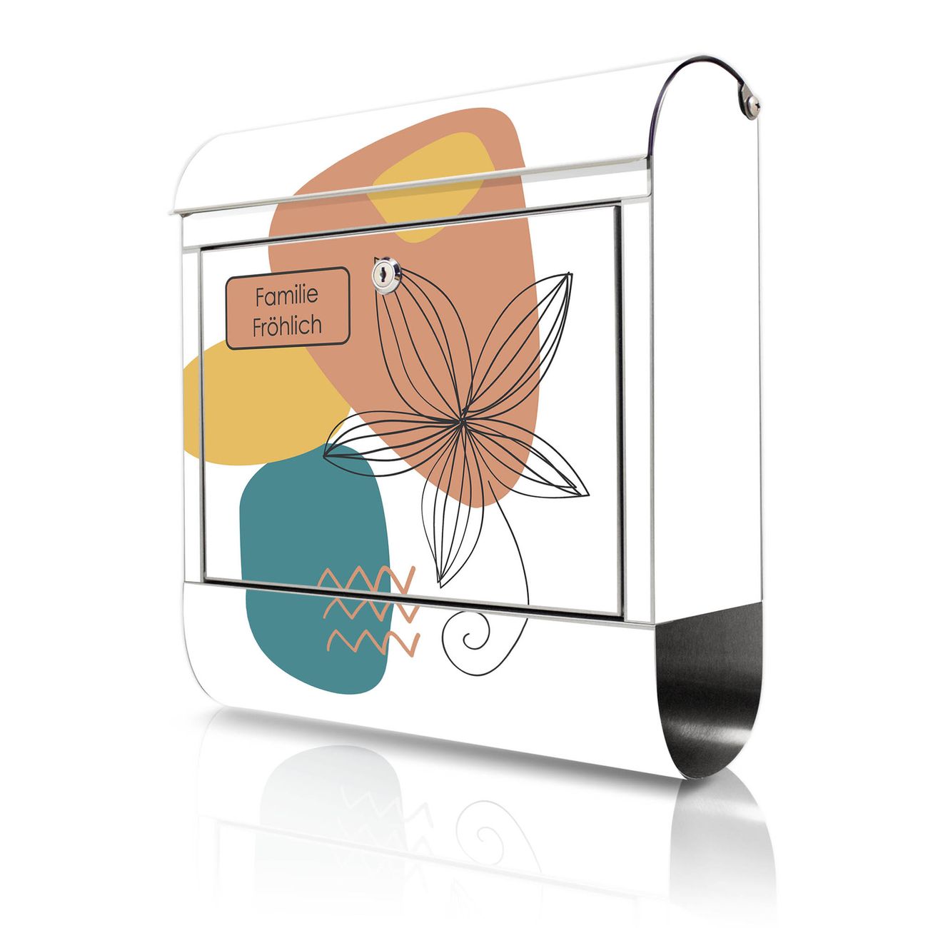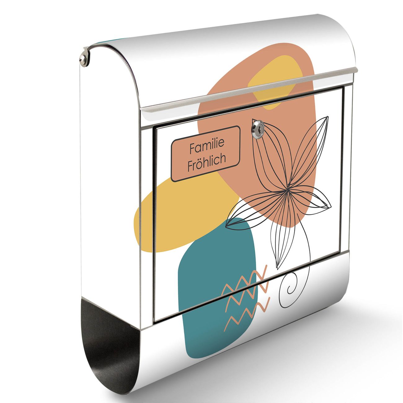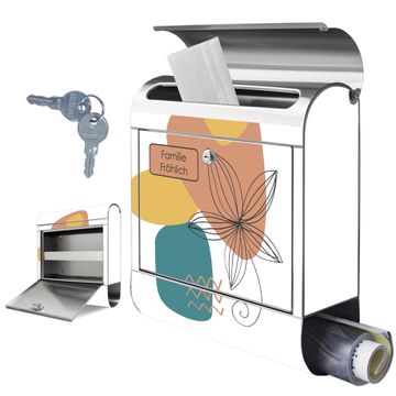 Wandbriefkasten Edelstahl Motiv Abstrakte Blumen Lineart