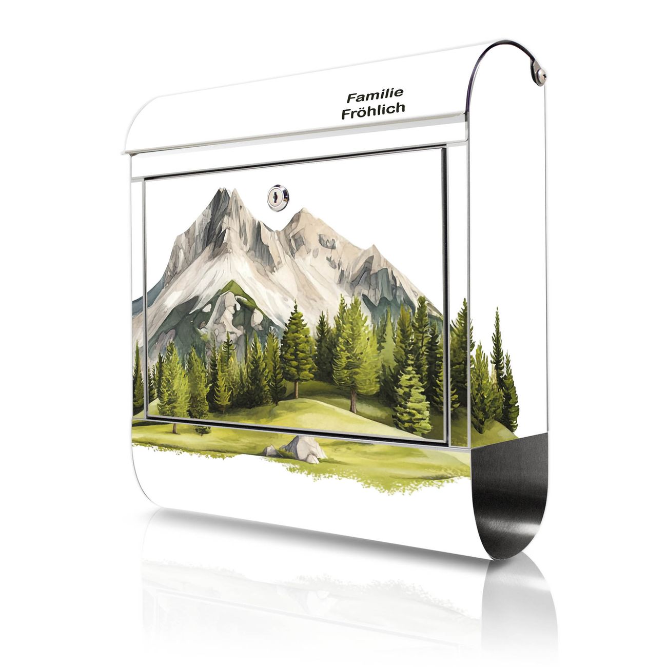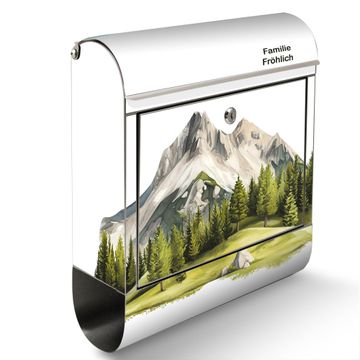 Wandbriefkasten Edelstahl Motiv Alpine Landschaft