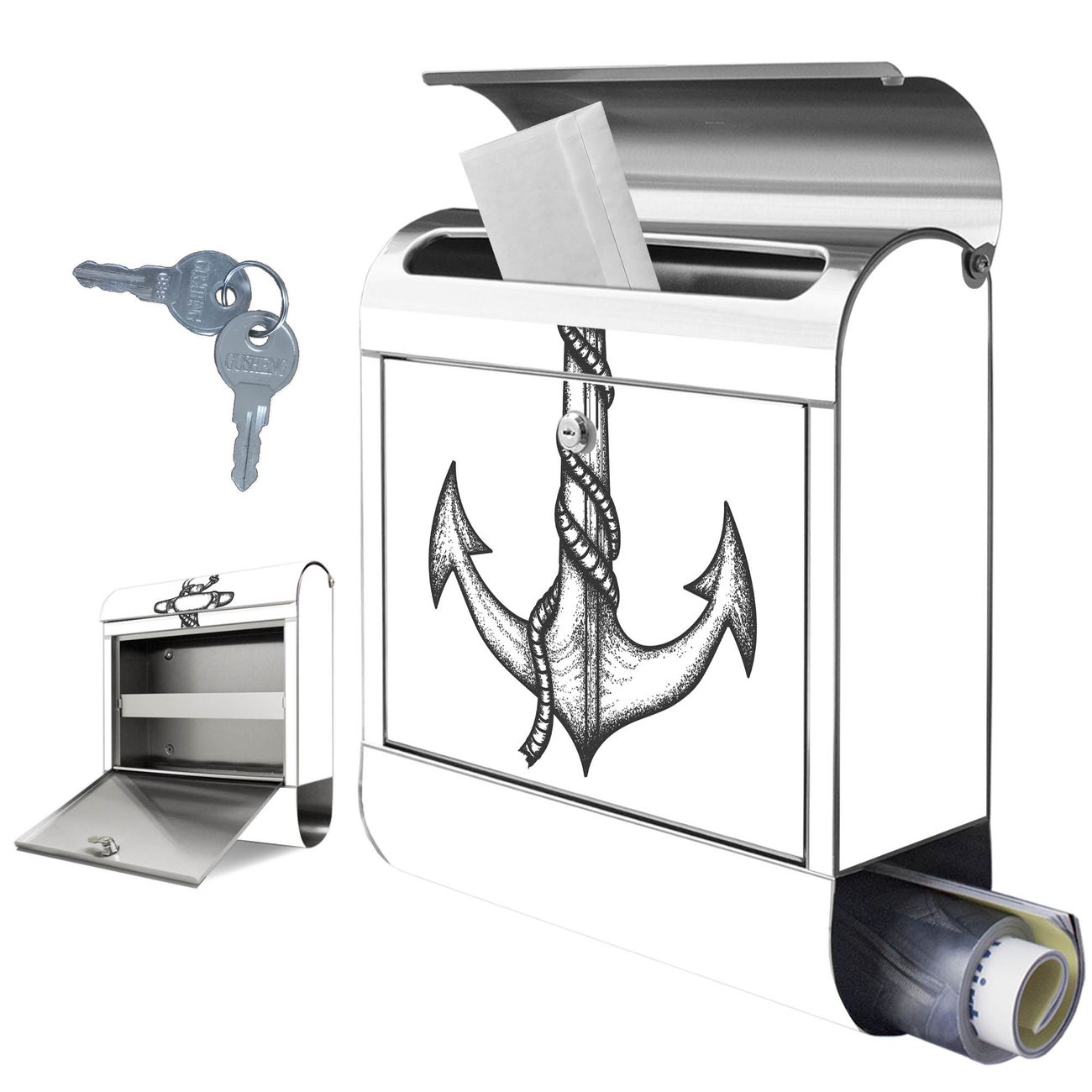 Wandbriefkasten Edelstahl Motiv Anker 2