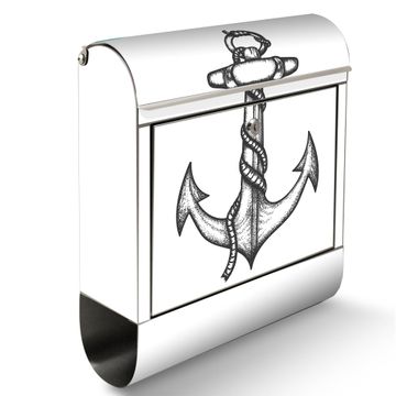 FUNKTION: Der banjado Edelstahl Briefkasten mit Motiv Motiv Anker 2 bietet Ihnen mit seinem Fassungsvermögen genügend Platz auch für große A4 Sendungen. Das integrierte Zeitungsfach eignet sich hervorragend um unkompliziert die Tageszeitung zu fassen. Auf Wunsch können Sie bei uns den passenden Ständer kaufen und so aus dem Wandbriefkasten einen Standbriefkasten machen. DESIGN: Der Motivbriefkasten hat ein sehr ansprechendes und ausgefallenes Design, damit entlocken Sie Ihren Nachbarn und dem Postboten ein Lächeln. Heben Sie Sich ab von der tristen grauen Masse ohne auf Funktionalität zu verzichten. DETAILS: Der Design Briefkasten mit Motiv Motiv Anker 2 besteht aus hochwertigem 18/0 Edelstahl. Das Motiv besteht aus einer wetter- und UV-resistenten Folie, die mit einem Schutzlaminat überzogen ist. Der Briefkasten wird mit Montagematerial und zwei Schlüsseln geliefert. NUTZEN: Sie können diesen Briefkasten sowohl als Wandbriefkasten montieren oder einen passenden Ständer auswählen und als Standbriefkasten einbetonieren. Die Größe bietet genügend Platz für Sendungen aller Art, das hochwertige Edelstahl ist rostfrei und die Motivfolie absolut wetterfest. SCHUTZ: Um Ihre Post optimal vor Witterungseinflüssen wie Starkregen zu schützen, empfehlen wir, den Briefkasten geschützt anzubringen. BANJADO: Ihr Briefkasten wird in Sachsen in einer kleinen Manufaktur von Hand veredelt. Die Motivfolie ist lösungsmittelfrei und schutzlaminiert, dies sorgt für einen langen Halt. Wir legen großen Wert auf die Verbindung von Funktionalität und Design. Sie erhalten Handarbeit aus Sachsen.