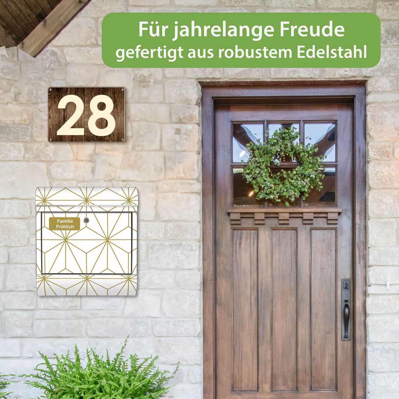 Der Vorschau-Text Familie Fröhlich wird durch Ihren persönlichen Wunschtext ersetzt. Die Schriftart und Farbe bleiben gleich wie in der Vorschau.