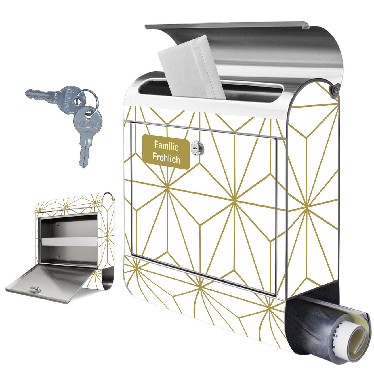 Wandbriefkasten Edelstahl Motiv Asanoha Muster