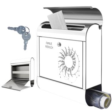 FUNKTION: Der banjado Edelstahl Briefkasten mit Motiv Motiv Astronomie 7 bietet Ihnen mit seinem Fassungsvermögen genügend Platz auch für große A4 Sendungen. Das integrierte Zeitungsfach eignet sich hervorragend um unkompliziert die Tageszeitung zu fassen. Auf Wunsch können Sie bei uns den passenden Ständer kaufen und so aus dem Wandbriefkasten einen Standbriefkasten machen. DESIGN: Der Motivbriefkasten hat ein sehr ansprechendes und ausgefallenes Design, damit entlocken Sie Ihren Nachbarn und dem Postboten ein Lächeln. Heben Sie Sich ab von der tristen grauen Masse ohne auf Funktionalität zu verzichten. DETAILS: Der Design Briefkasten mit Motiv Motiv Astronomie 7 besteht aus hochwertigem 18/0 Edelstahl. Das Motiv besteht aus einer wetter- und UV-resistenten Folie, die mit einem Schutzlaminat überzogen ist. Der Briefkasten wird mit Montagematerial und zwei Schlüsseln geliefert. NUTZEN: Sie können diesen Briefkasten sowohl als Wandbriefkasten montieren oder einen passenden Ständer auswählen und als Standbriefkasten einbetonieren. Die Größe bietet genügend Platz für Sendungen aller Art, das hochwertige Edelstahl ist rostfrei und die Motivfolie absolut wetterfest. SCHUTZ: Um Ihre Post optimal vor Witterungseinflüssen wie Starkregen zu schützen, empfehlen wir, den Briefkasten geschützt anzubringen. BANJADO: Ihr Briefkasten wird in Sachsen in einer kleinen Manufaktur von Hand veredelt. Die Motivfolie ist lösungsmittelfrei und schutzlaminiert, dies sorgt für einen langen Halt. Wir legen großen Wert auf die Verbindung von Funktionalität und Design. Sie erhalten Handarbeit aus Sachsen.
