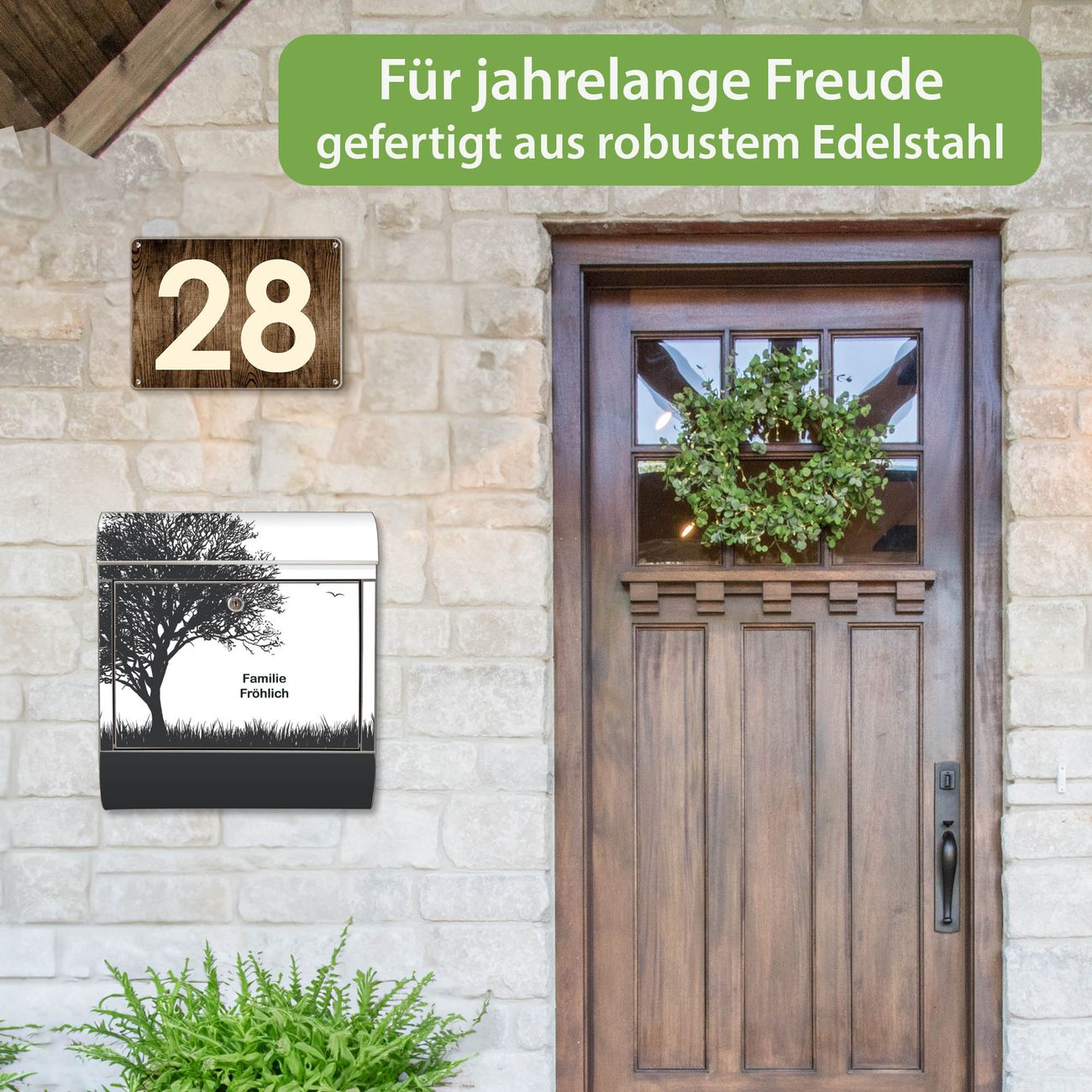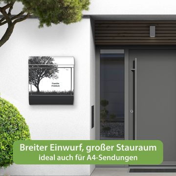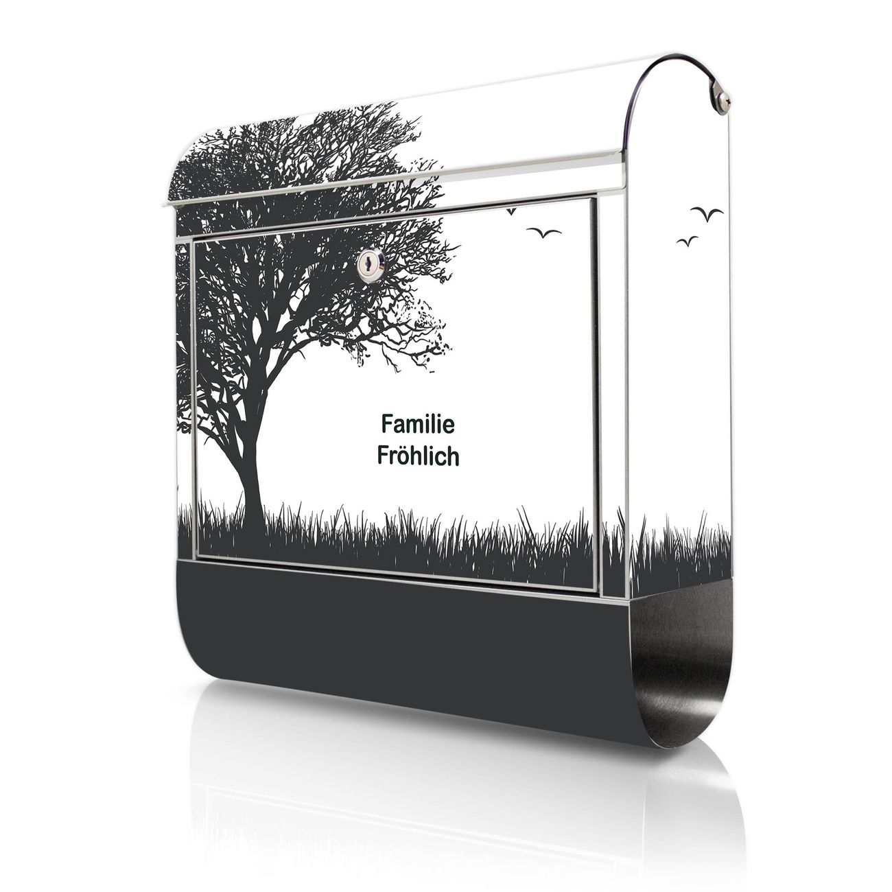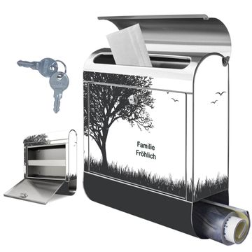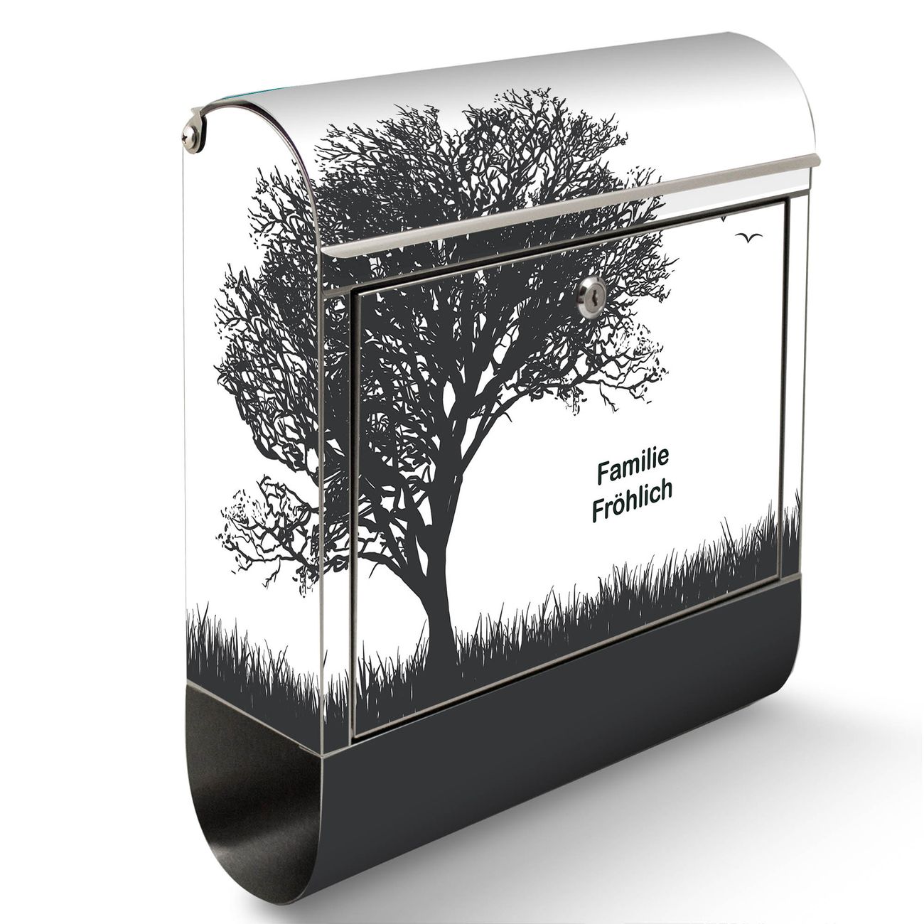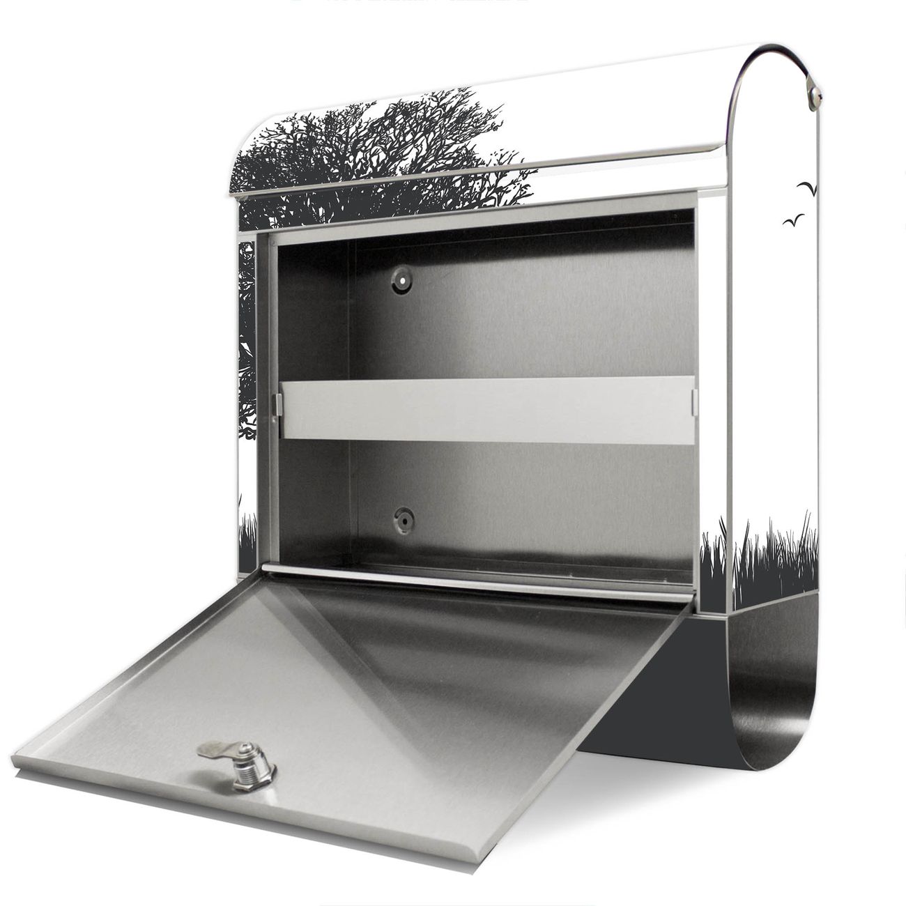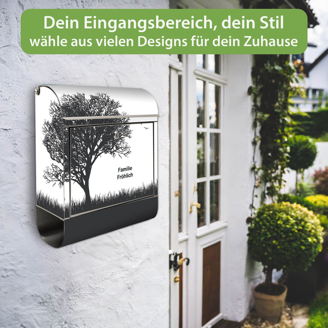 Wandbriefkasten Edelstahl Motiv Baum und Vögel Silhouette