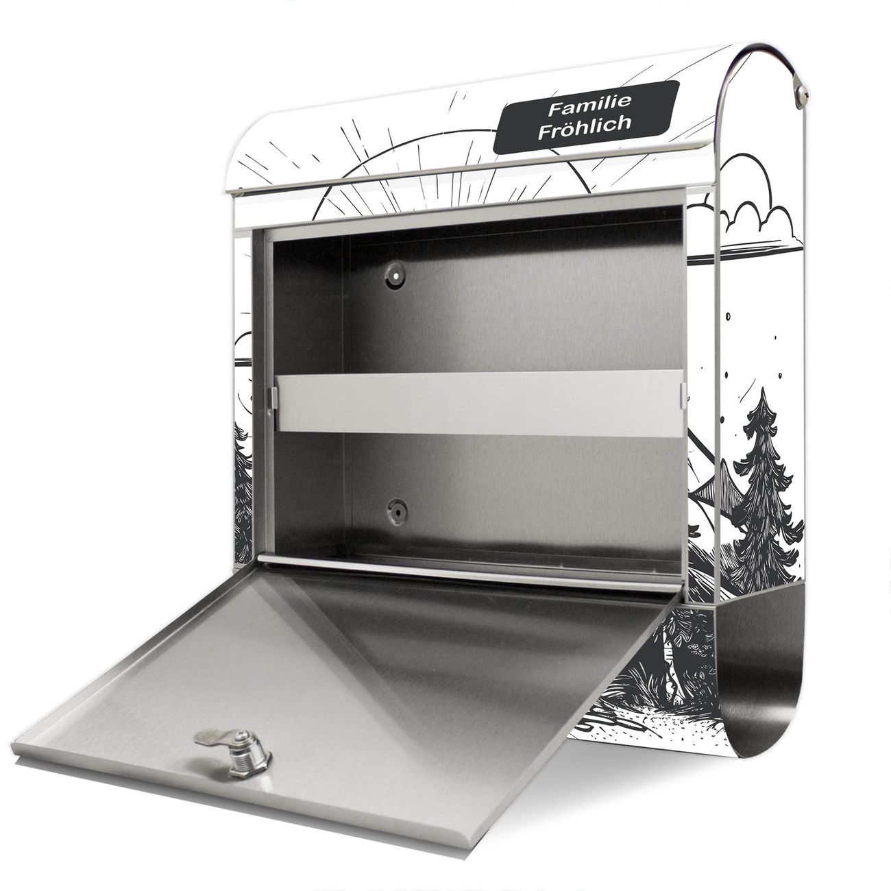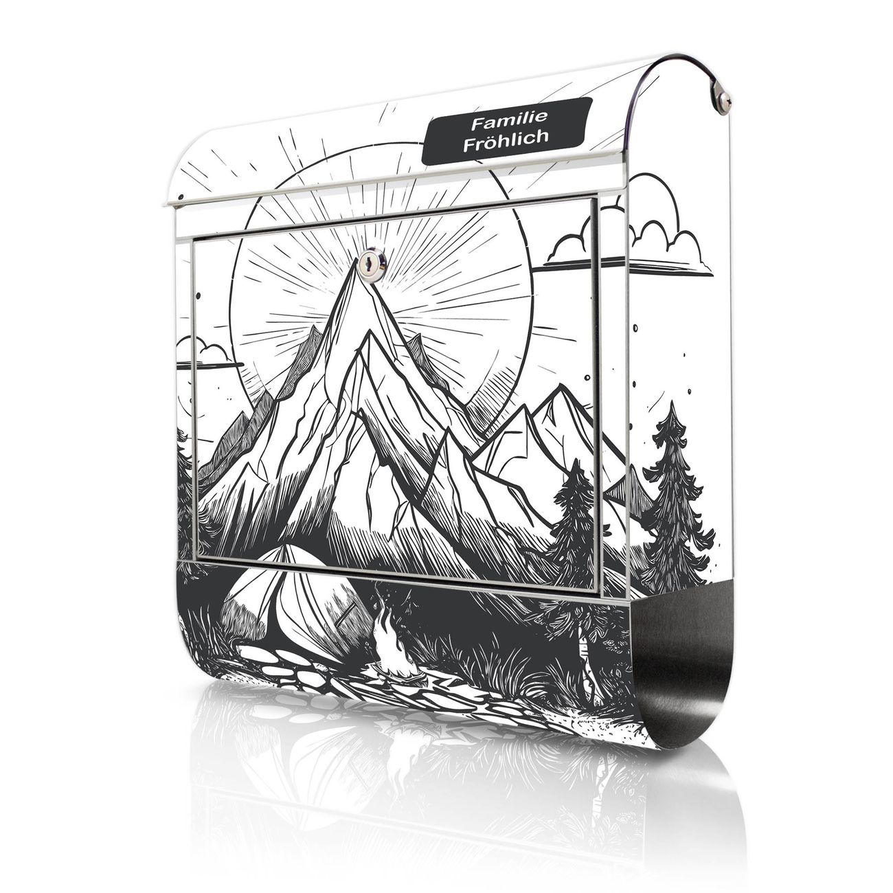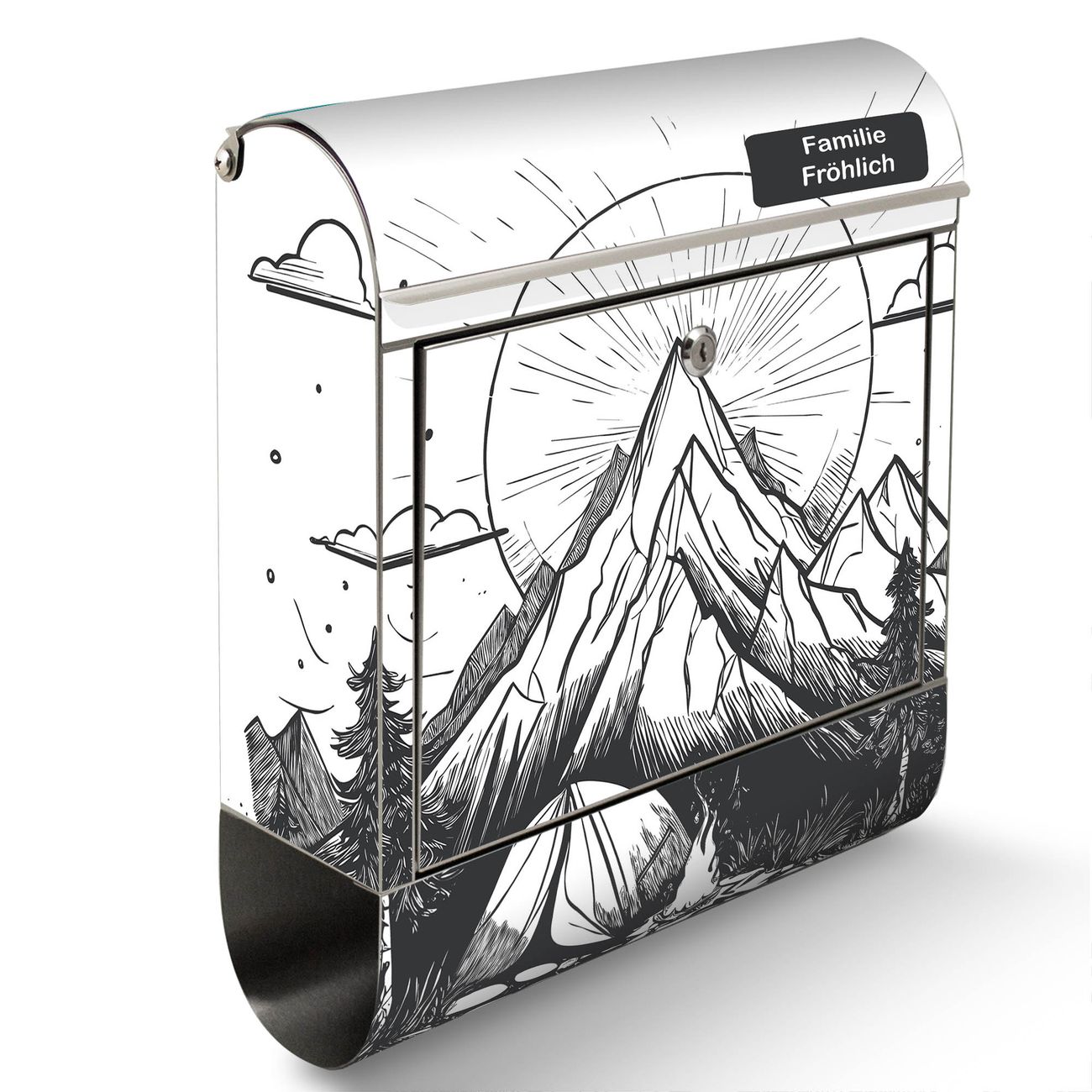 Wandbriefkasten Edelstahl Motiv Bergcamping Abenteuer 2