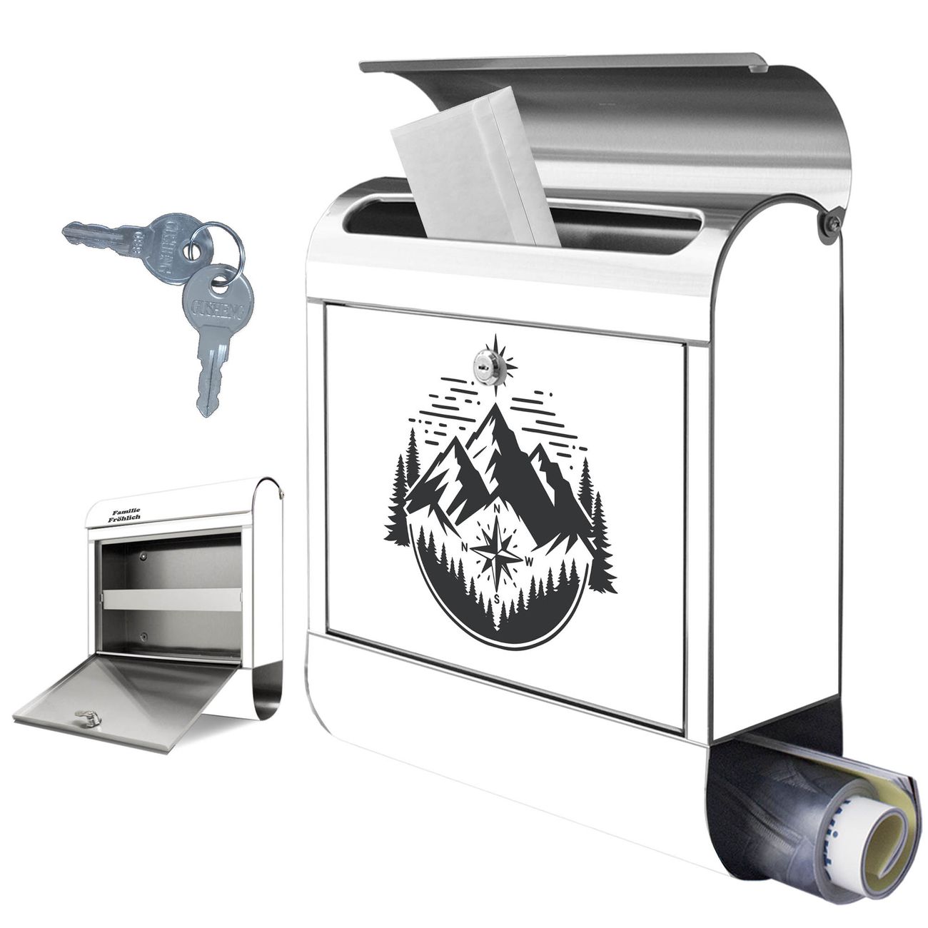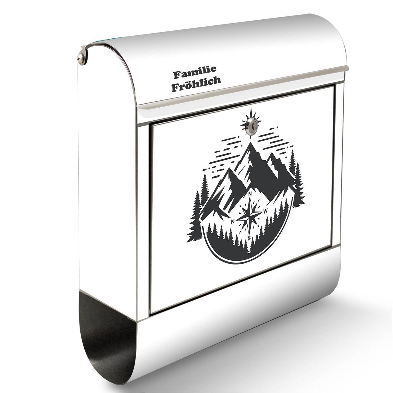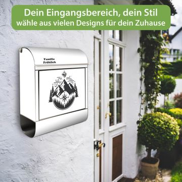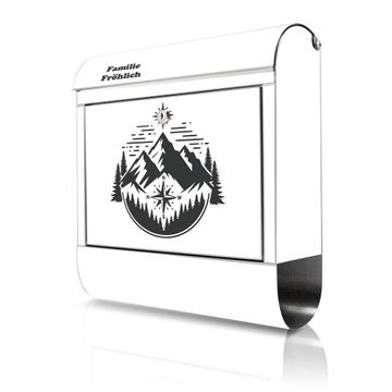 Wandbriefkasten Edelstahl Motiv Bergkompass