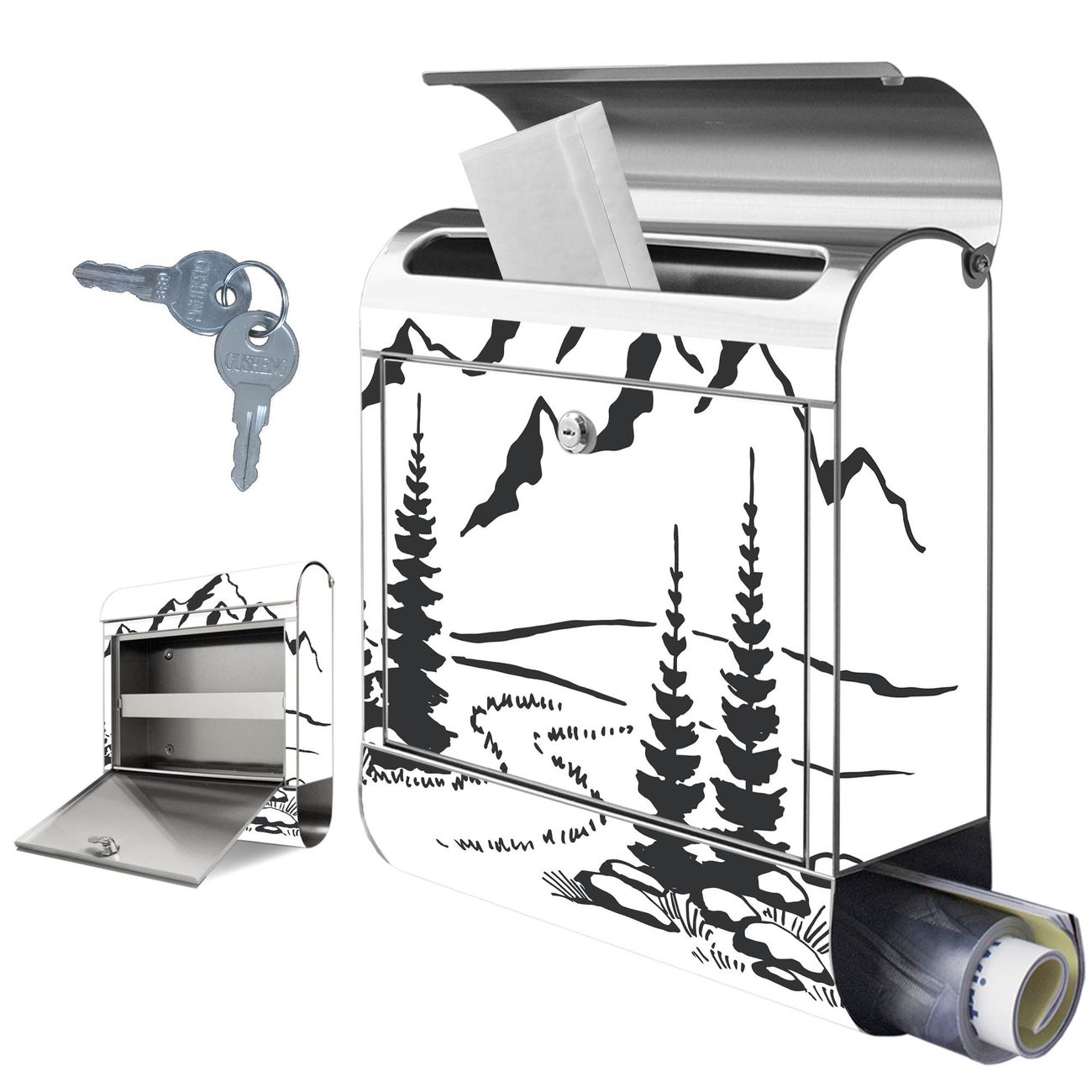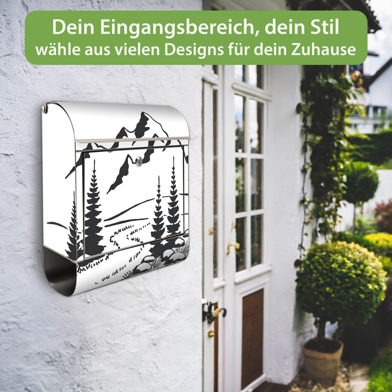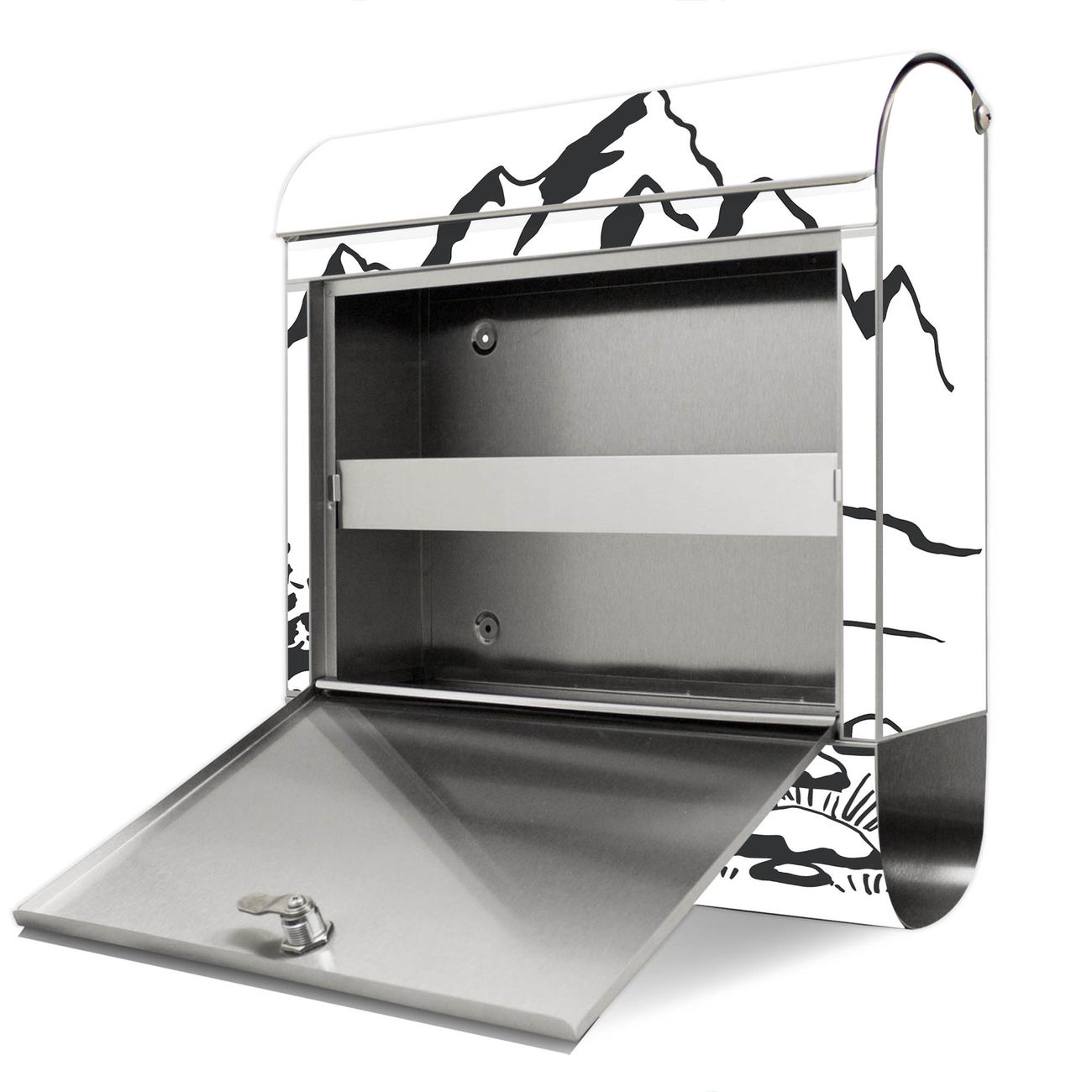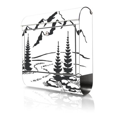 Wandbriefkasten Edelstahl Motiv Berglandschaft Zeichnung