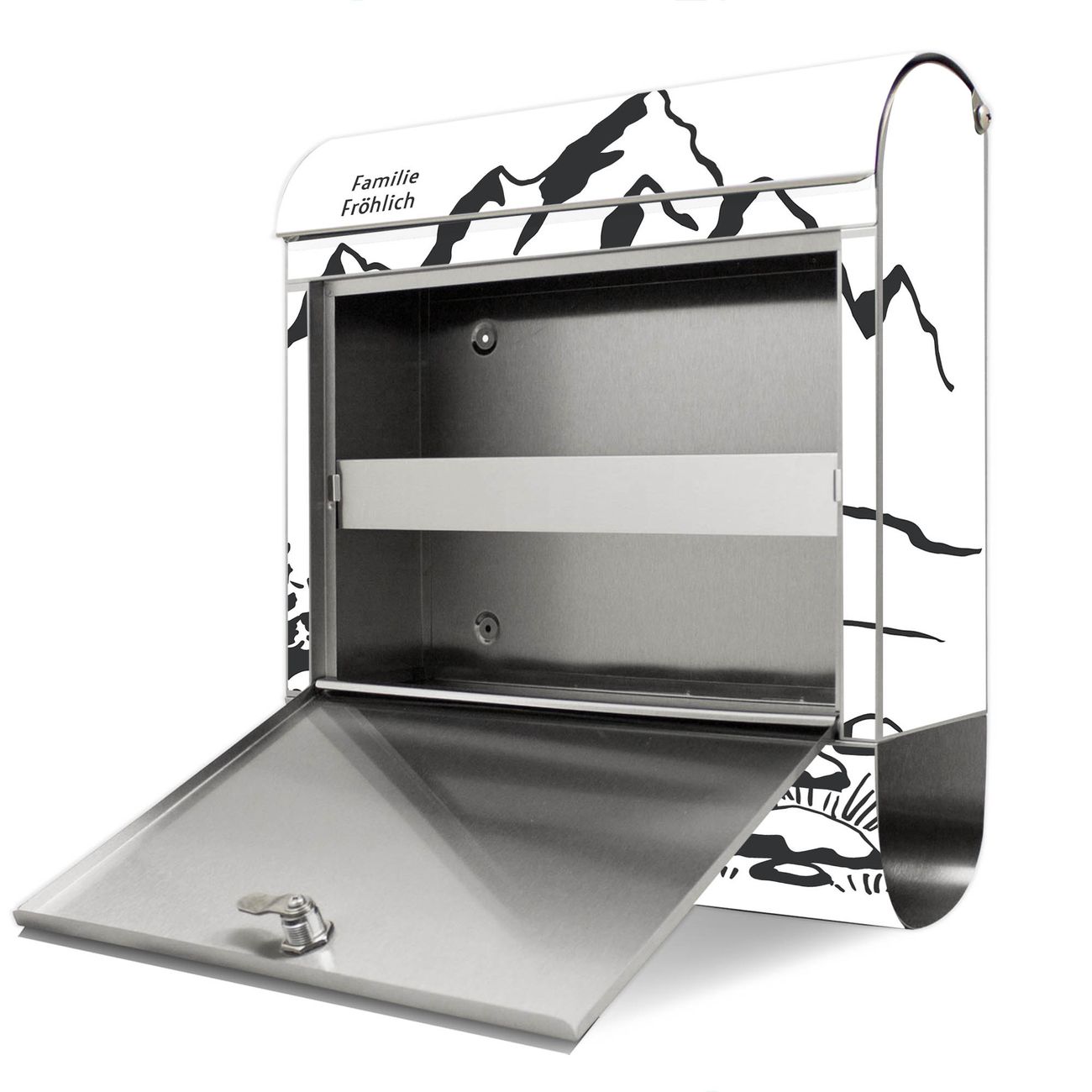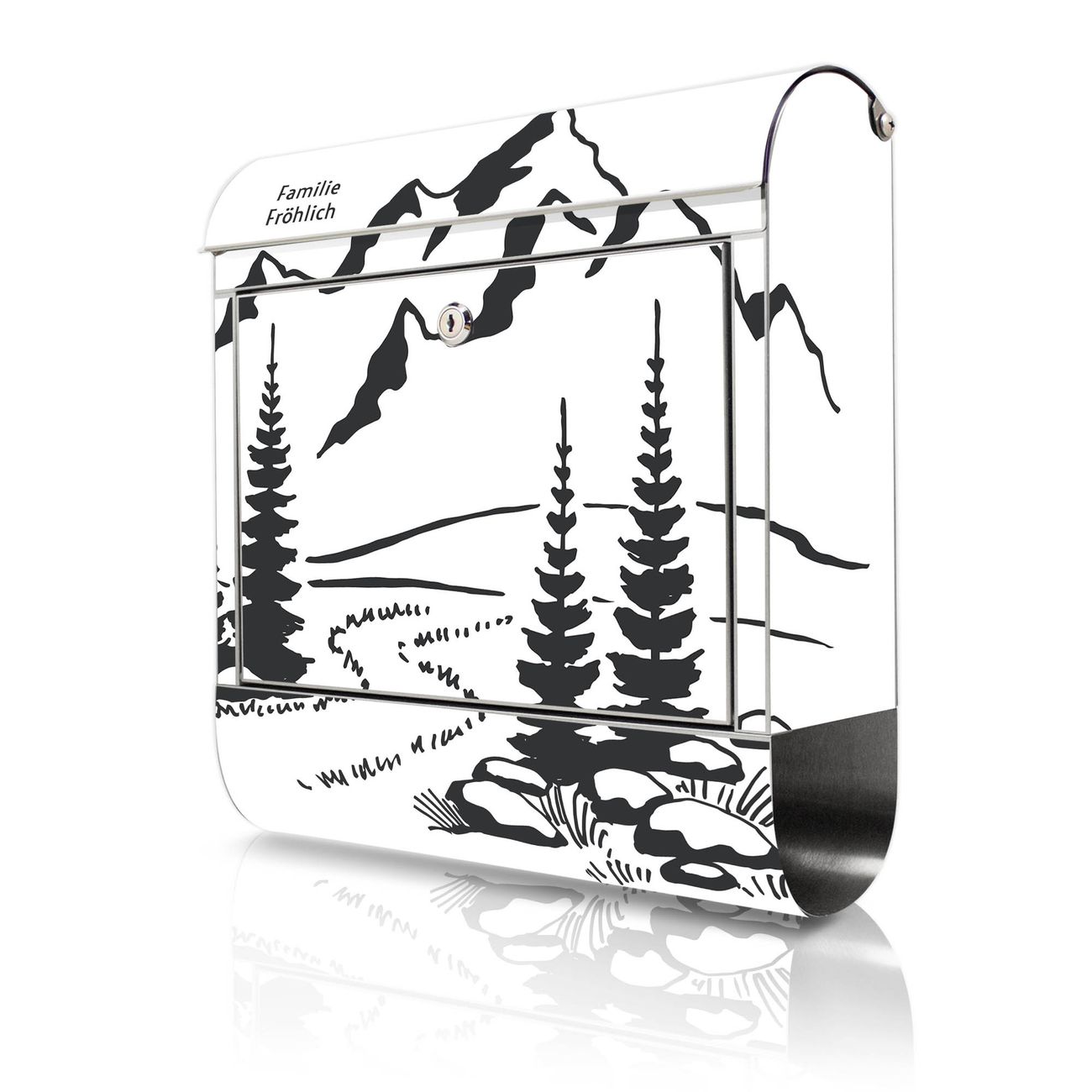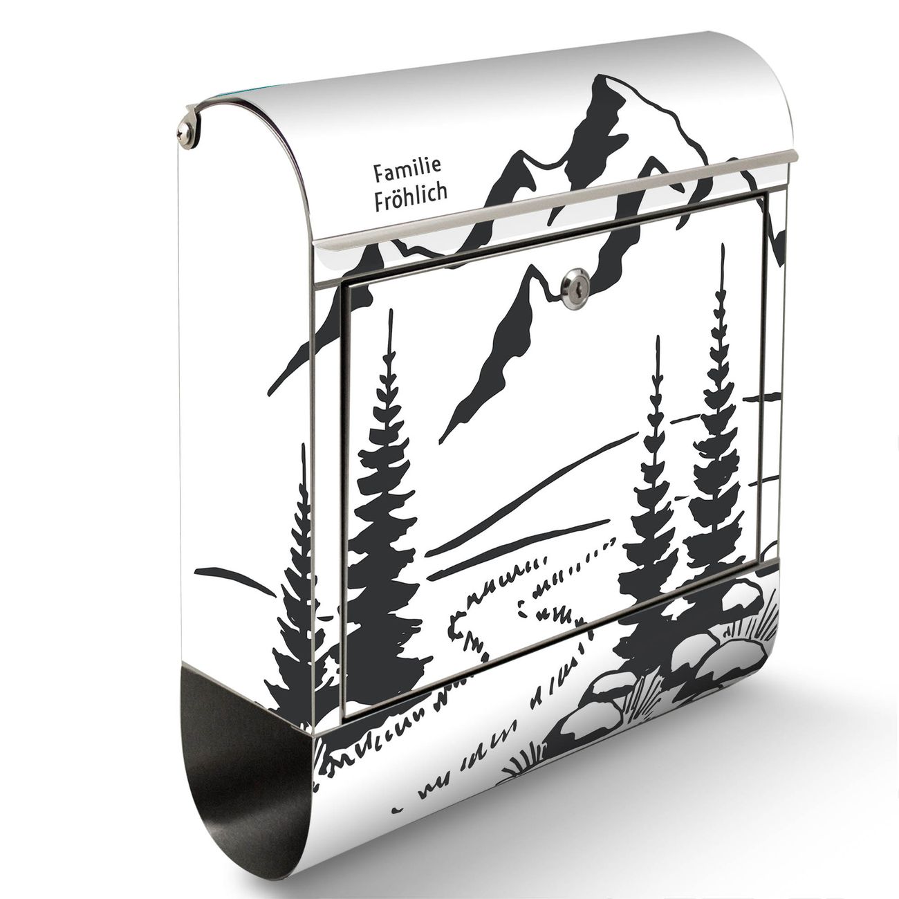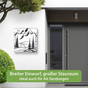 Wandbriefkasten Edelstahl Motiv Berglandschaft Zeichnung