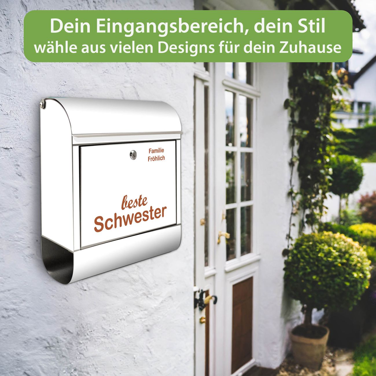 Wandbriefkasten Edelstahl Motiv beste Schwester 2