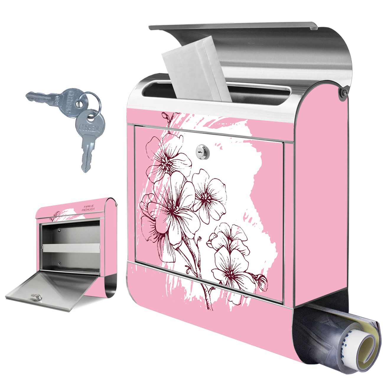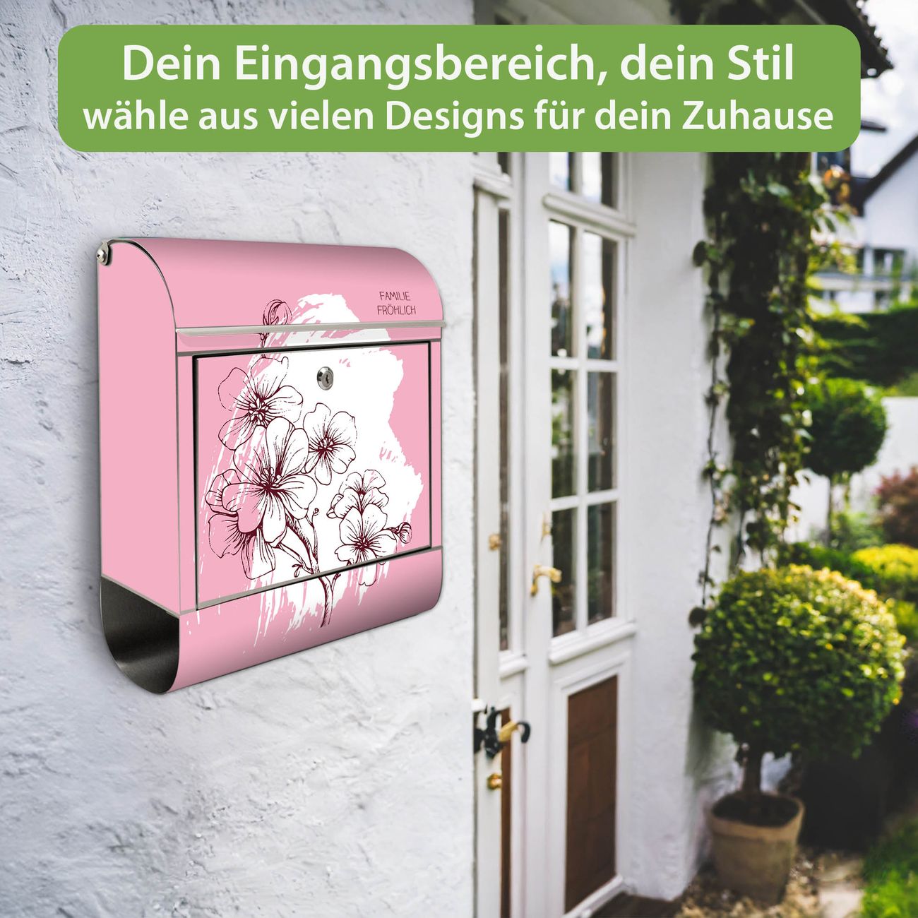 Wandbriefkasten Edelstahl Motiv Blütenpracht