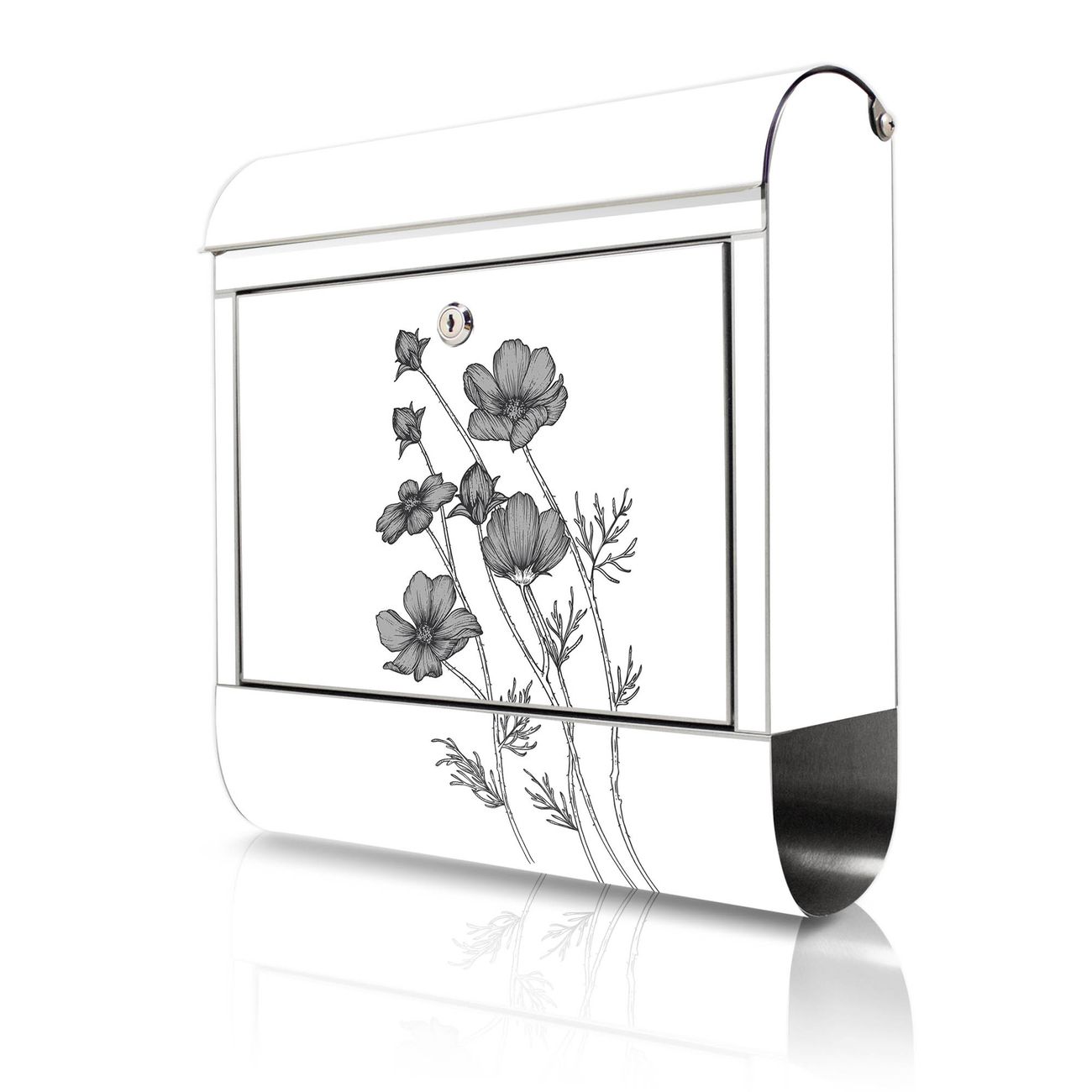 Wandbriefkasten Edelstahl Motiv Blumen in Schwarz-Weiß