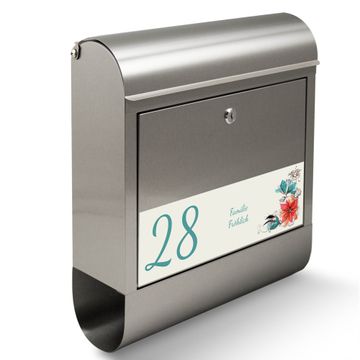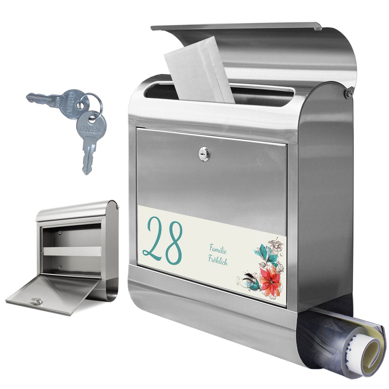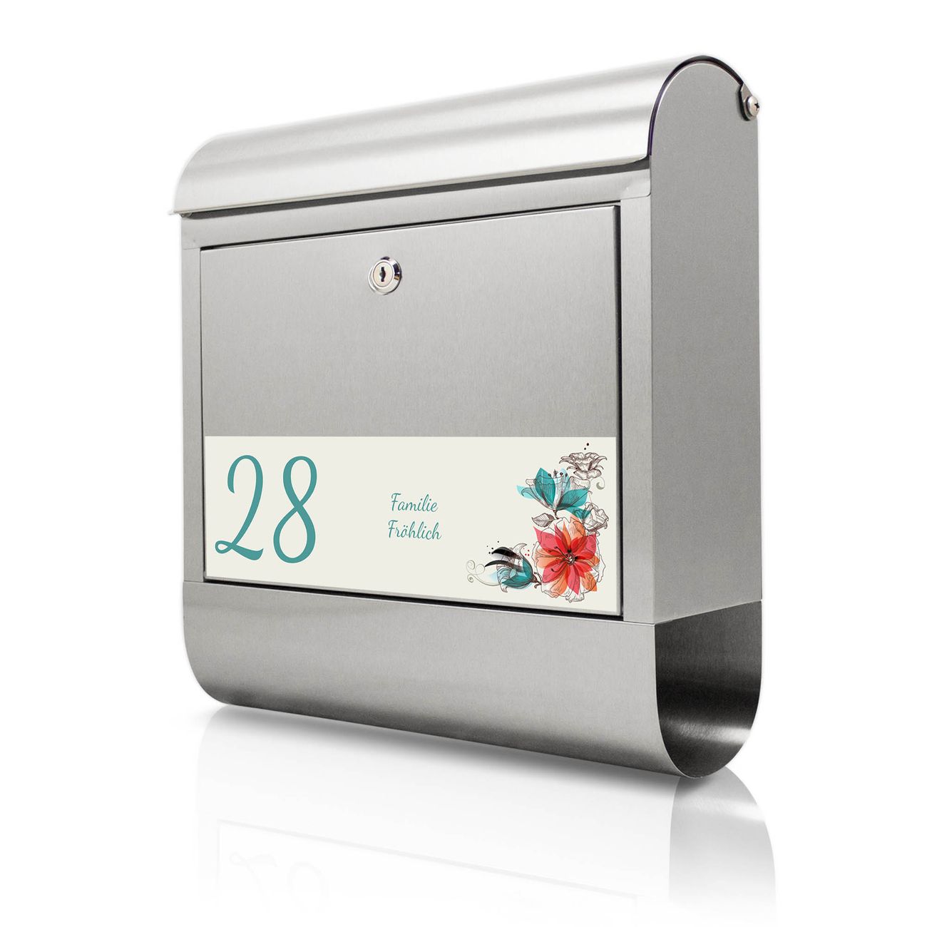 Wandbriefkasten Edelstahl Motiv Blumenkaligraphie kompakt
