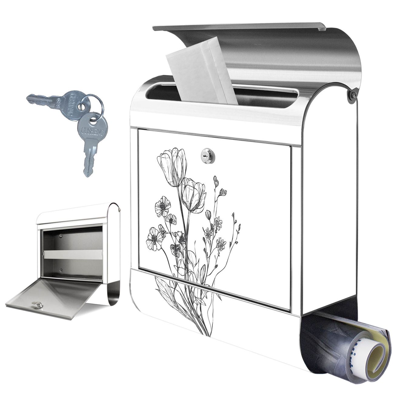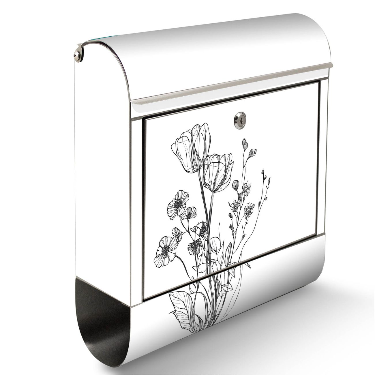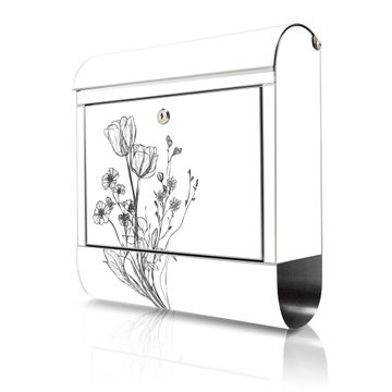 Wandbriefkasten Edelstahl Motiv Blumenskizze