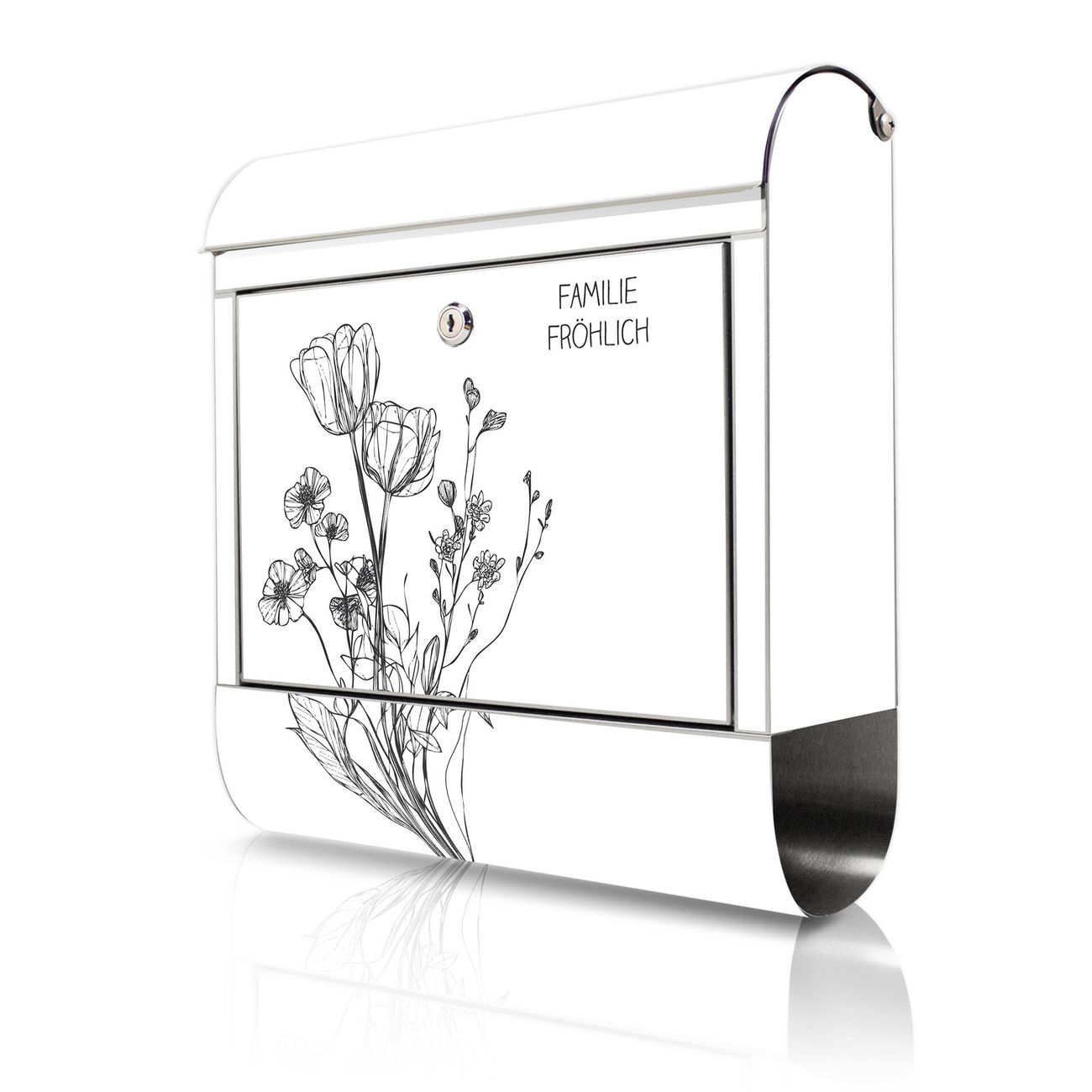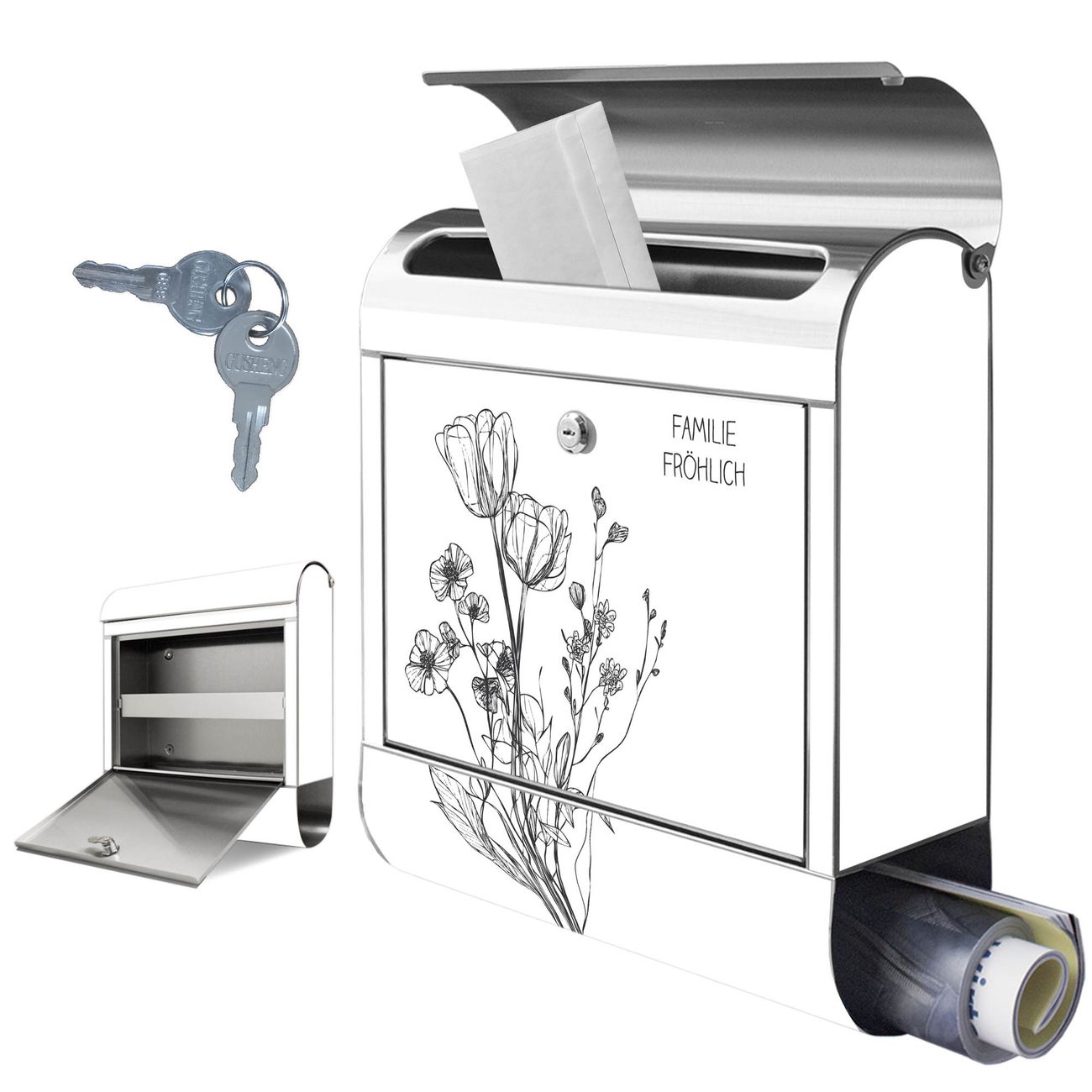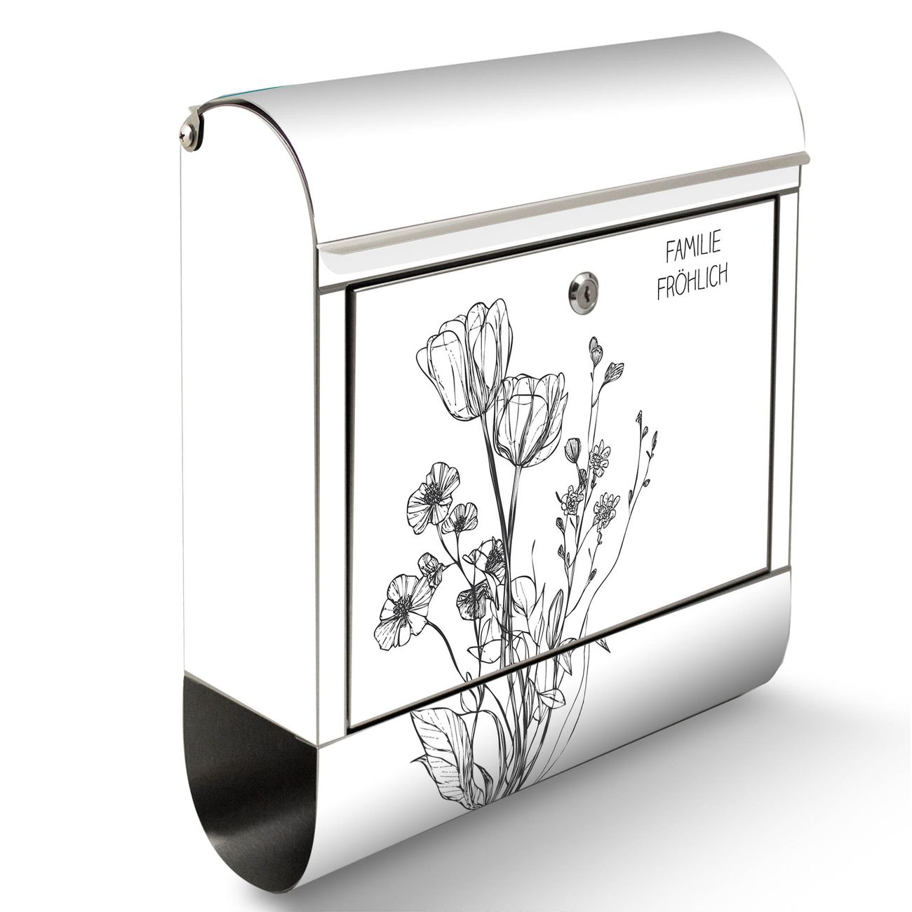 Wandbriefkasten Edelstahl Motiv Blumenskizze